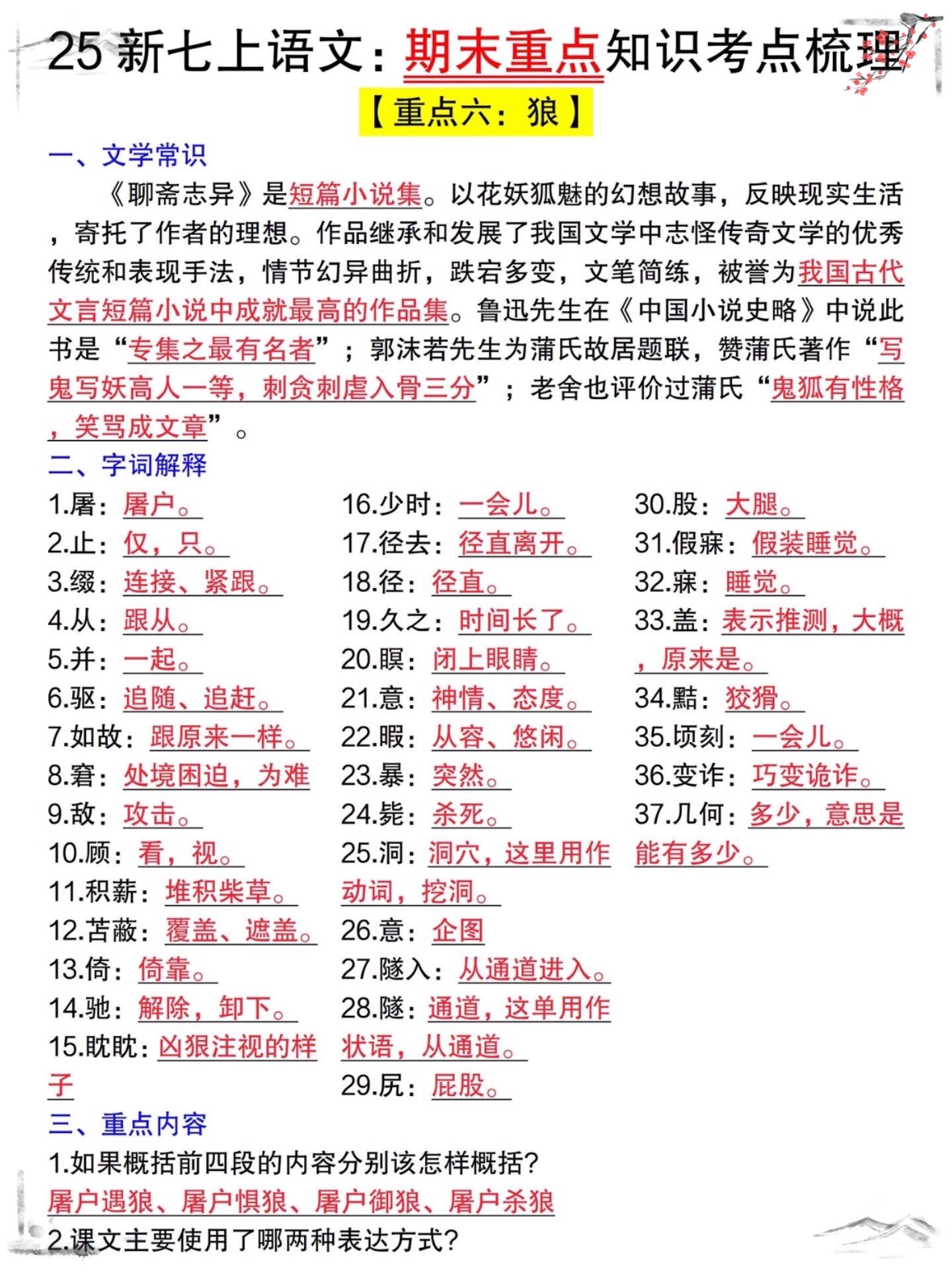 七年级上册语文期末押题抢先看命中率超高。七年级上册语文期末押题抢先看...