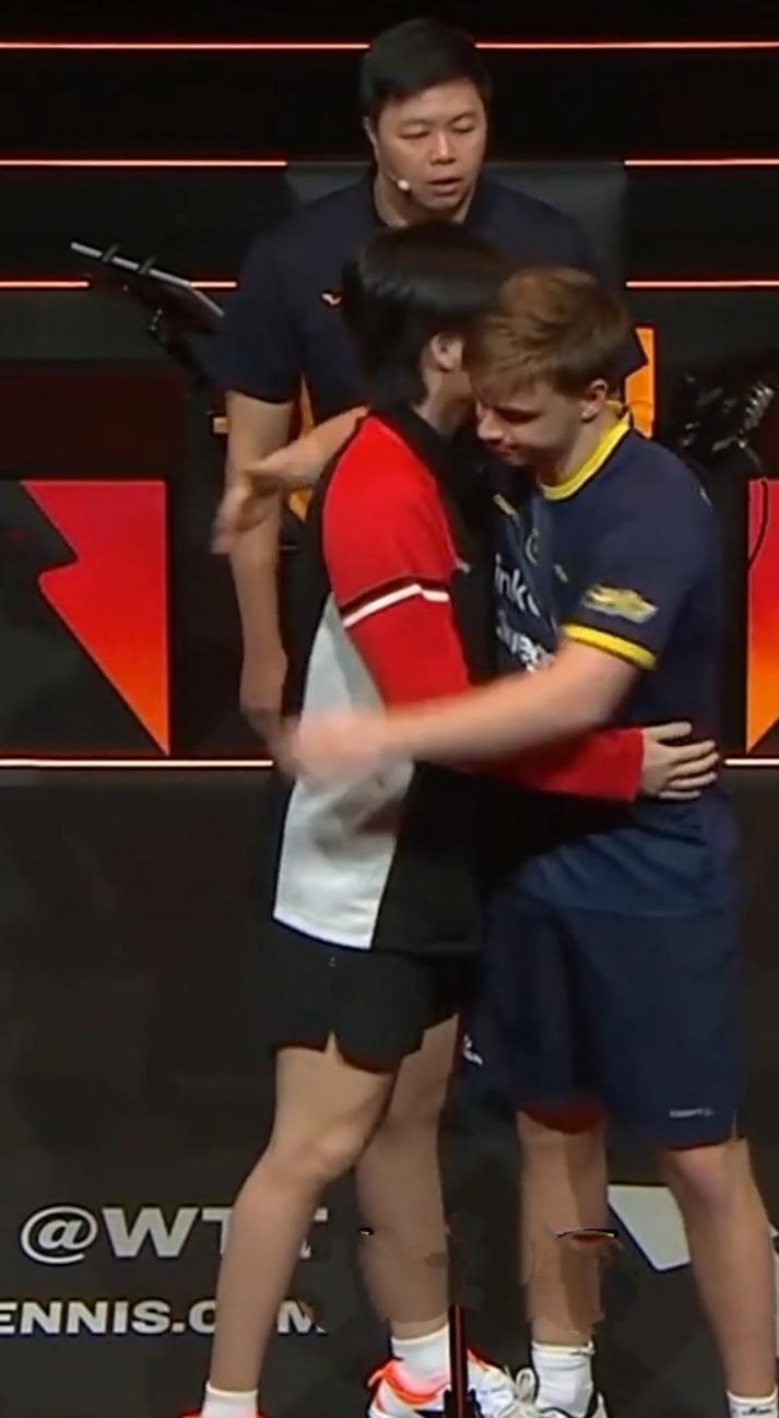 **世界第一的球拍举起来了,却“不敢”发球。 ** 你看见王楚钦向裁判举手,和对