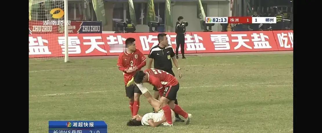 湘超小组赛,郴州对株洲,比分2比1,株洲赢。可大家记住的不是进球,而是郴州球员腿抽筋倒地那一下。株洲队医张文斌、队长李毅没犹豫,冲过去喷药、掰脚,裁判停表三分钟。省足协刚签完文明承诺书,转头就真兑现,面子挣得比三分还硬。赛后省里点名表扬,明年还设道德风尚奖。职业赛场规矩多,业余草根反倒把人情味踢回来了。