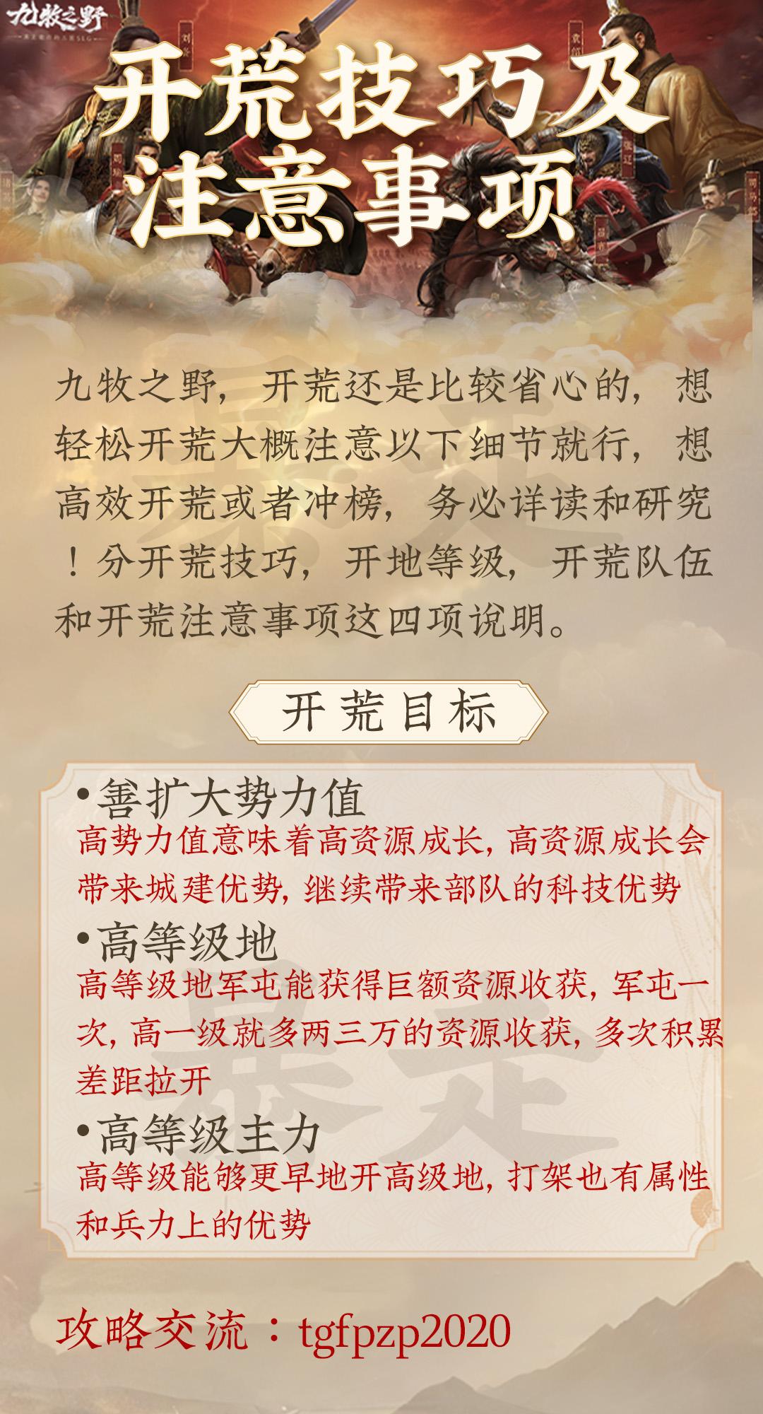 九牧之野 开荒攻略之细节篇。细节篇包括开荒注意事项,技巧及开地流程
