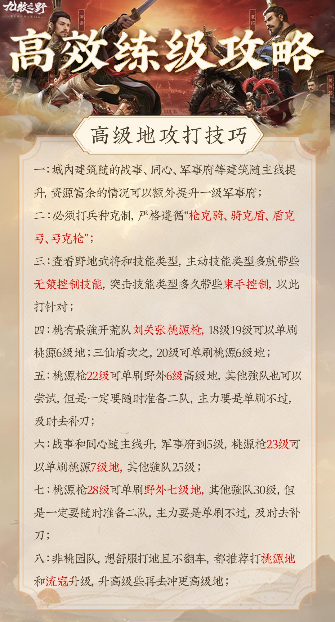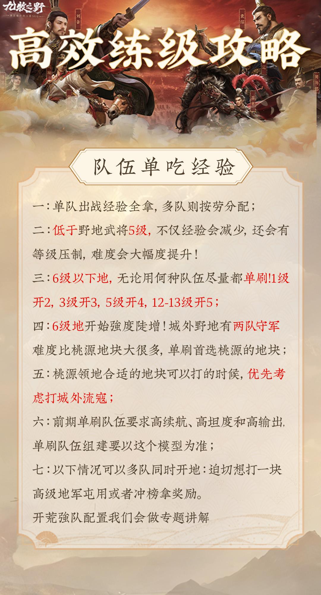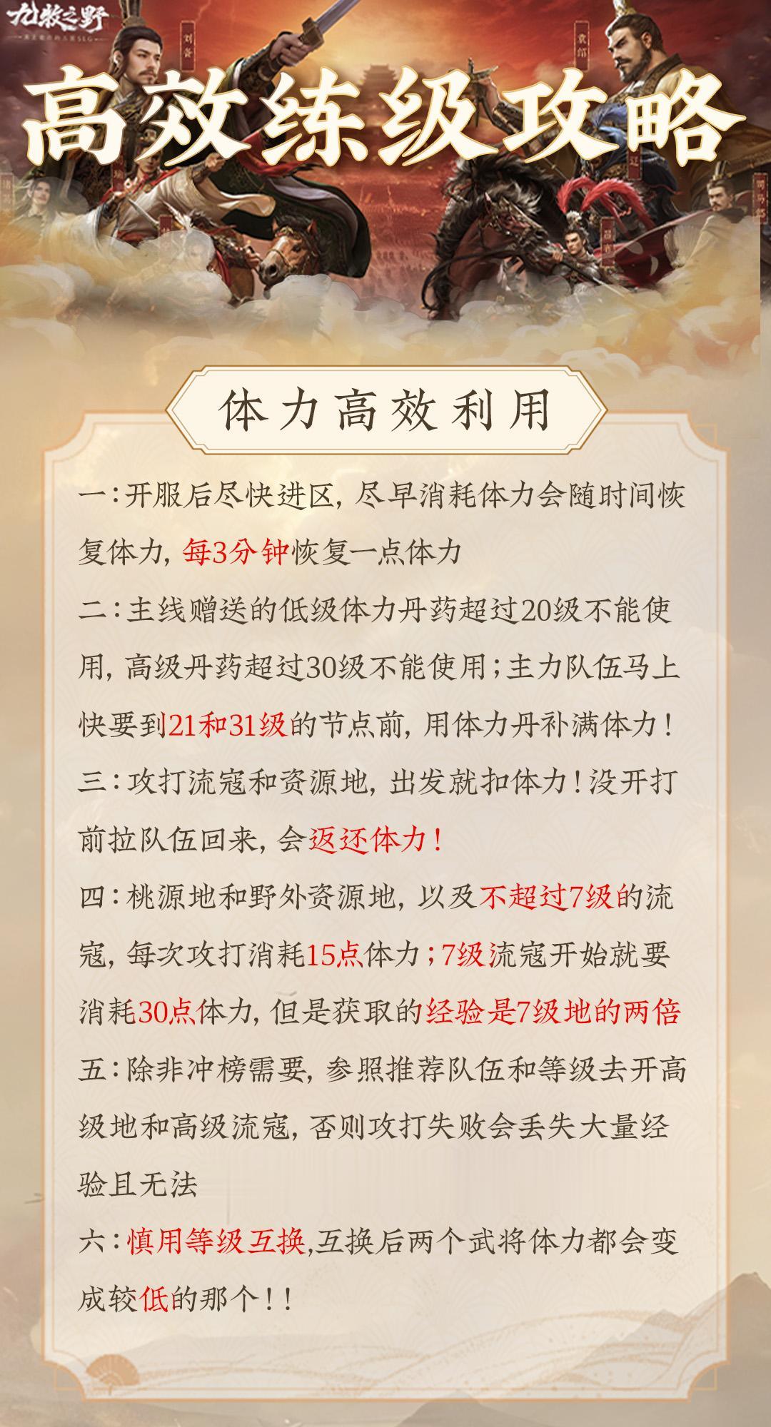 九牧之野 开荒攻略之高效练级篇。开荒初期,经常听到有兄弟抱怨,队伍等级低,高级地尽落他人之手,打架又被等级压制,吃亏兵损高!高效练级开荒期重中之重,以体力高效利用、队伍单吃经验以及高级地攻打技巧这三个层面给大家讲讲!