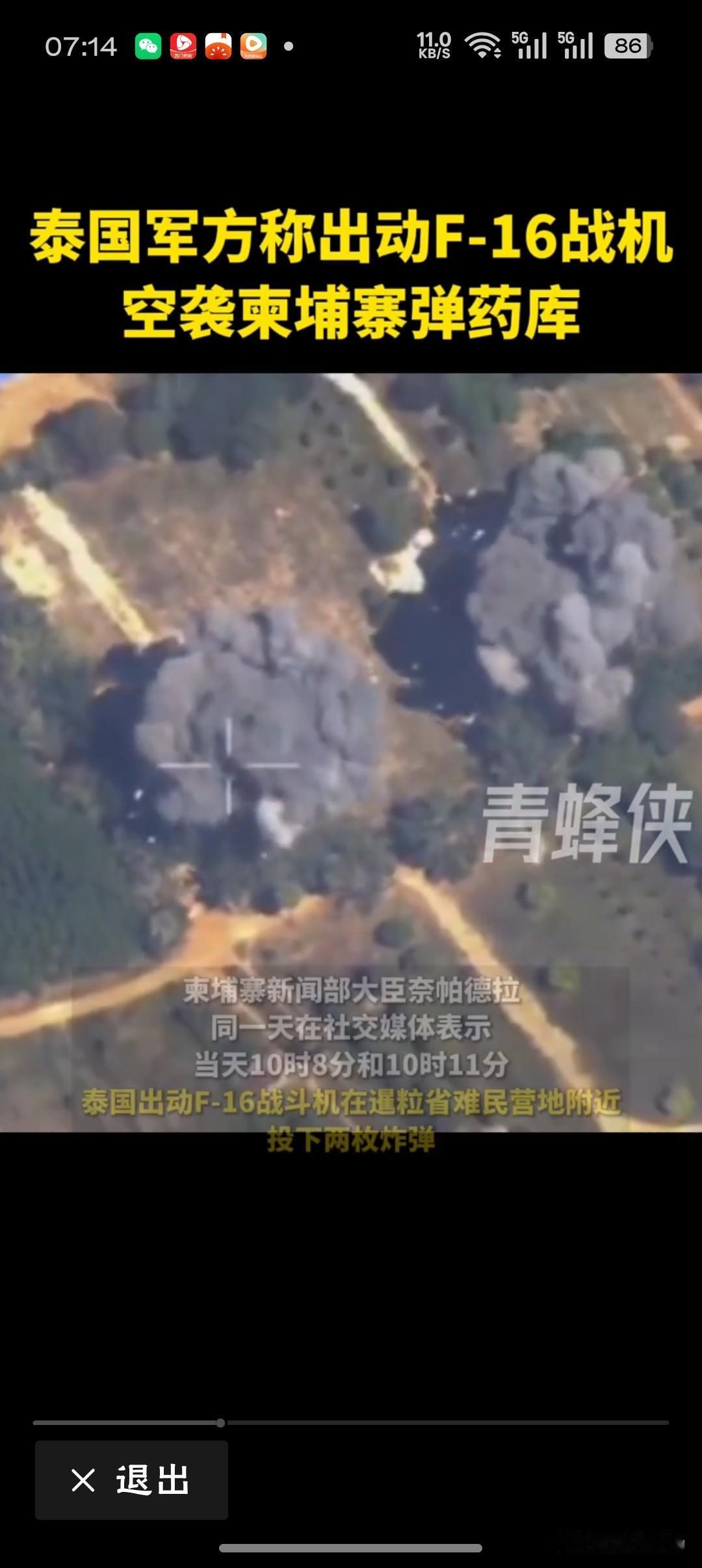 泰国F-16空袭柬埔寨弹药库画面曝光“火药味飘过边境线,谁的‘安全’在冒烟?”