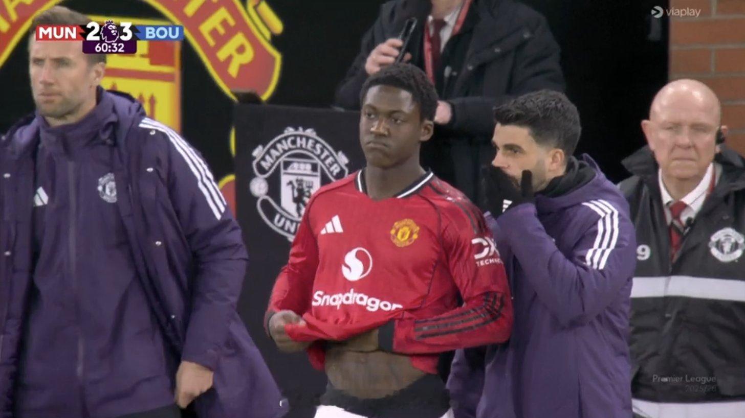 【搞事情】曼联4比4伯恩茅斯 曼联中场科比梅努的同父异母兄弟,穿着一件印有“Free Kobbie Mainoo”字样的黑T,出现在比赛现场,要求“曼联放了梅努”,意思就是让梅努外租离队,踢上球以便争取入选英格兰世界杯大名单。点评:以这样的形式来表达想转会的意愿,将事情公开化,是不是有点不好呢?