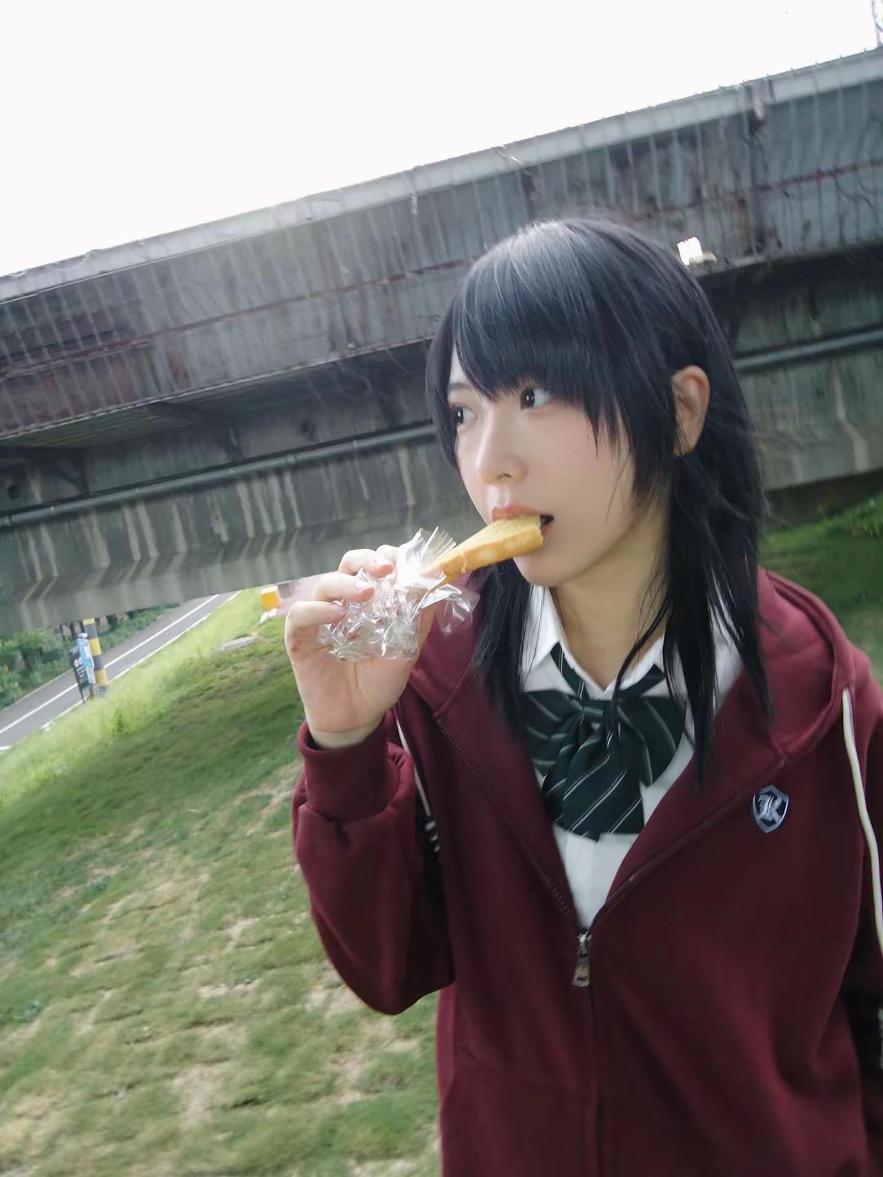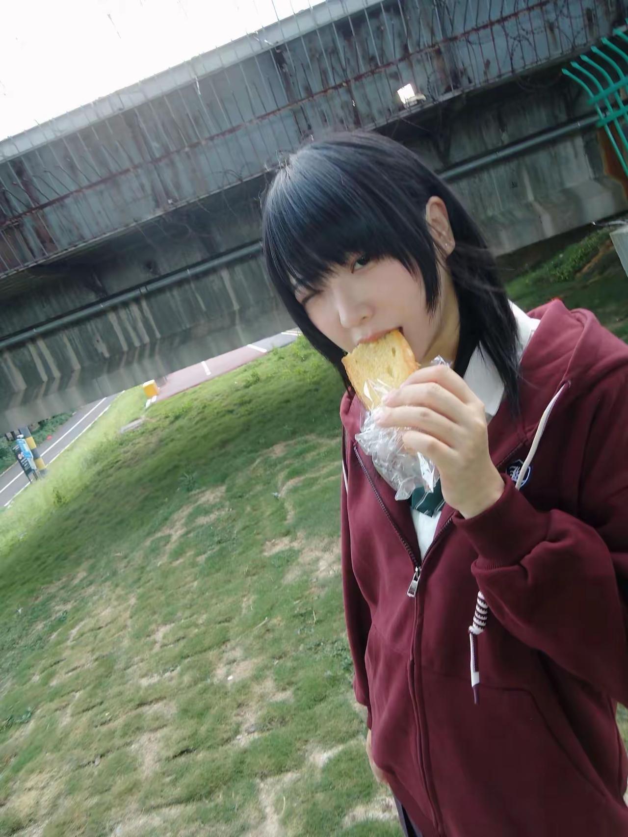 校园日常|少女在桥下吃面包,青春气息满满🍞💕女生吃零食 吃蛋糕女孩 面包美少女 美女面包 女学生就餐 面包甜妹 公园里的面包店