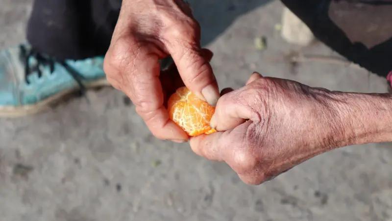 他之所以动手打人,不过知道这个坐门口吃橘子的老人是个残疾人且这个老人家里没人在家