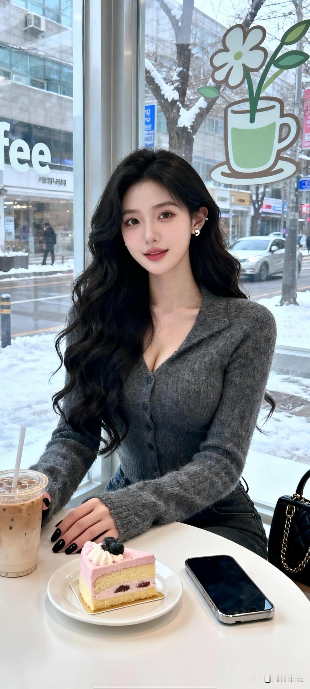 窗前美人倚,咖啡香满怀。