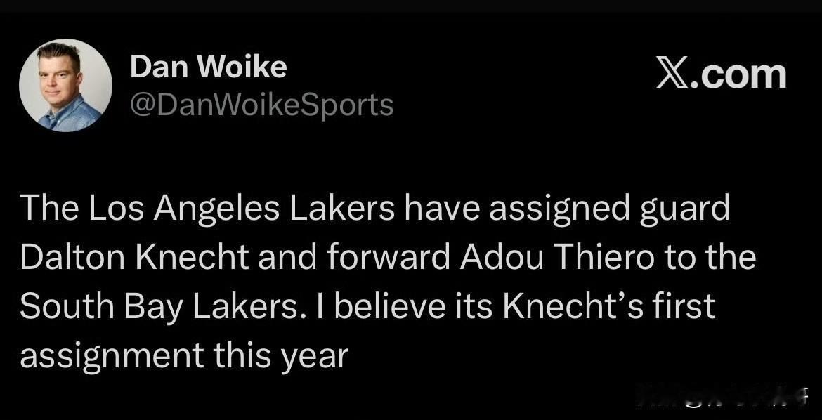 两员大将离开湖人队!!!!克内克特和蒂耶罗被下放至发展联盟! 根据记者Woike最新消息透露,湖人队选择将克内克特和蒂耶罗下放到发展联盟南湾湖人队,值得一提的是这是克内克特本赛季首次被下放至发展联盟。 这俩人的下放的时间一般不会太久,不过湖人最近两天没有比赛,他们可能会参加一些发展联盟的活动,湖人下一场比赛要到周五了,客场打爵士。 克内克特本赛季的表现没有什么特别亮眼的地方,如果有机会湖人肯定还是会将他送走,毕竟有过前面的案例,下一次只是早晚的事情。 蒂耶罗湖人还是比较喜欢的,但是目前在轮换阵容中他的机会也不会多,在湖人队内,年轻球员需要成长但是需要时间和耐心。 祝克内克特和蒂耶罗好运,加油! 湖人队内动态 湖人
