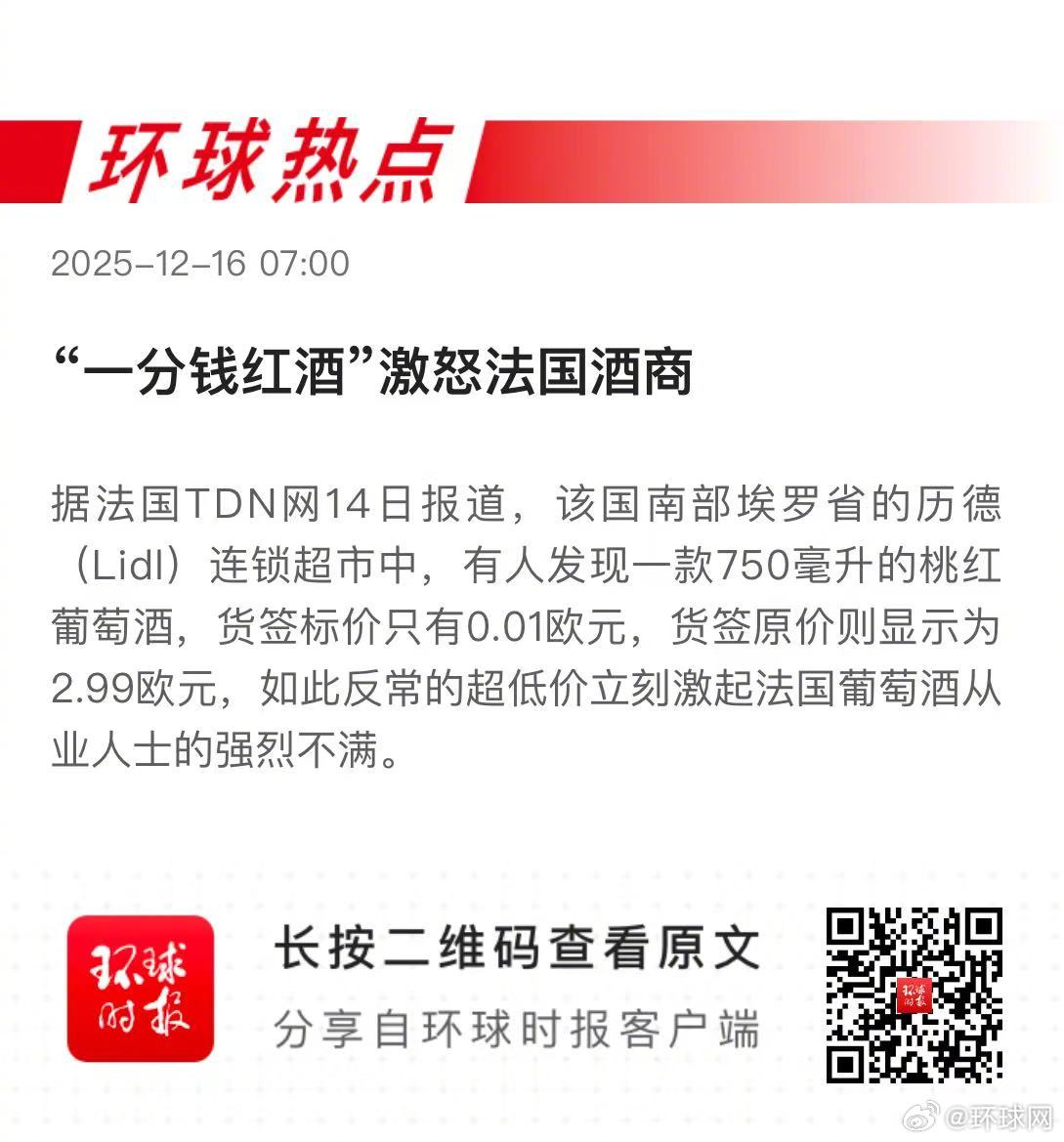 早安热点,新闻早点 ▲#法国1分钱红酒激怒酒商#▲#美报告称鱼鹰频繁坠毁是典型人祸# ▲#2026世界杯高昂票价震惊球迷##环球热点早知道#,了解更多↓↓↓