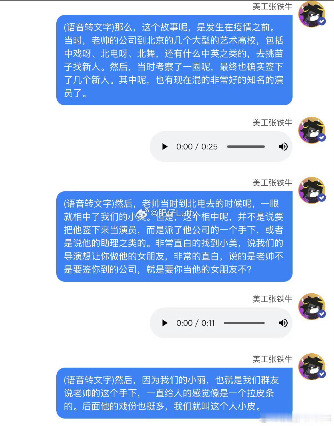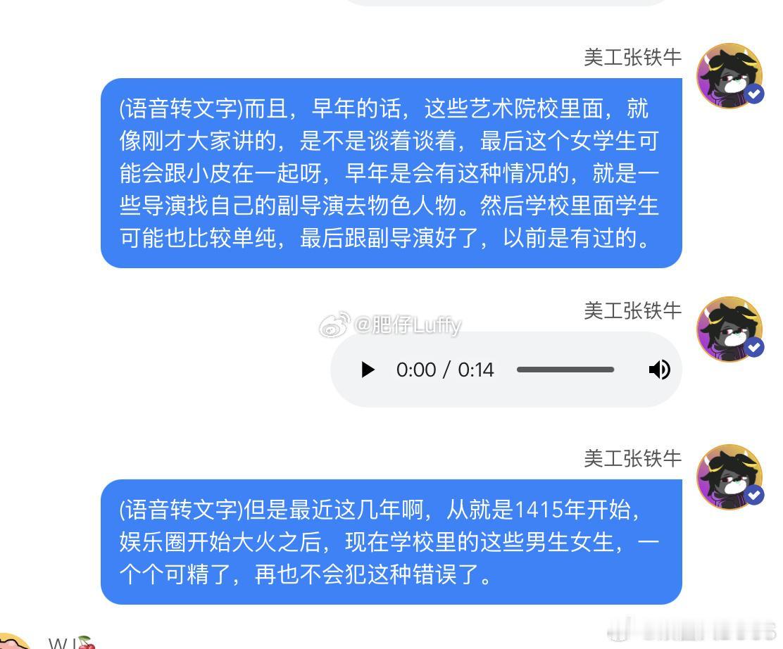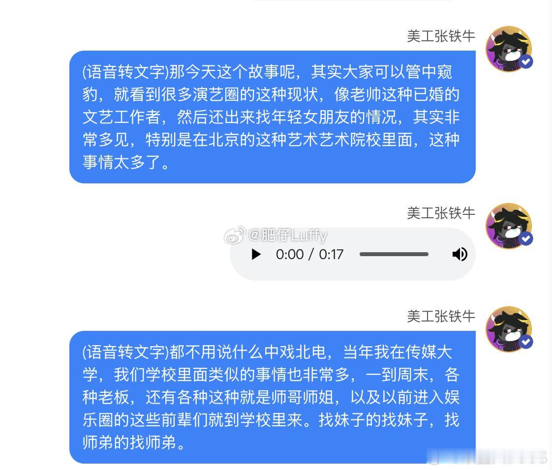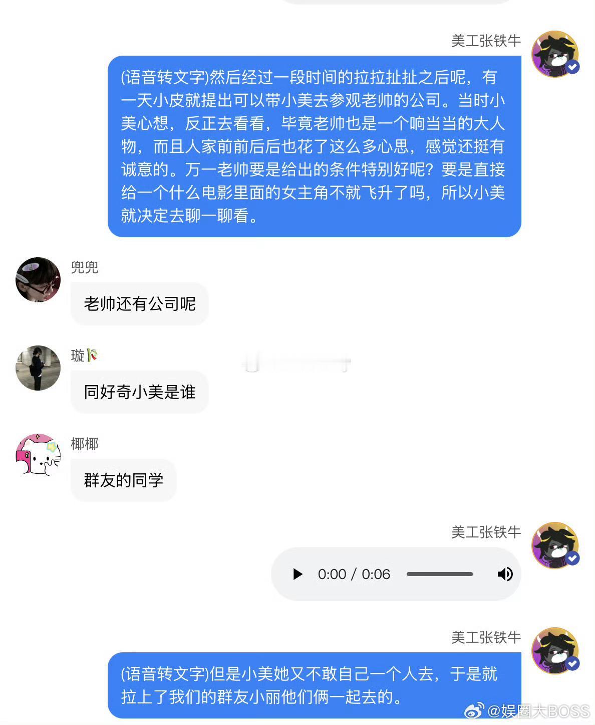 谁懂啊家人们!博主张铁牛这瓜直接炸穿娱乐圈!六七十岁的第五代大导演“老帅”,坐拥北京顺义独栋厂房私密公司,不好好拍戏,疫情前天天扎北电蹲新人,一眼就瞄上了小美。 直接派手下“小皮”冲上去传话:“我老板想让你当女友”,那架势活脱脱就是个专业拉皮条的!关键小美可是吴磊、宋祖儿同班同学,本来就对演戏没兴趣,身边还有年轻多金的男友,当场婉拒,半点面子没给老导演留。 被拒后老帅还不死心,让小皮天天往学校跑,扒小美各种信息,又邀她去公司参观。小美拉着同学小丽作陪,结果一去才发现全是画大饼,纯纯空手套白狼,连点实际诚意都没有。最后小美直接弃圈跑路,毕业后嫁入豪门当阔太,老帅竹篮打水一场空,六旬老头想老牛吃嫩草,终究是自讨没趣,尴尬到脚趾抠地!