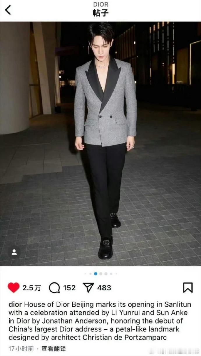 迪奥官方认领邓为李昀锐迪奥官方外网认领邓为李昀锐李昀锐出席迪奥新店开幕,西装造型
