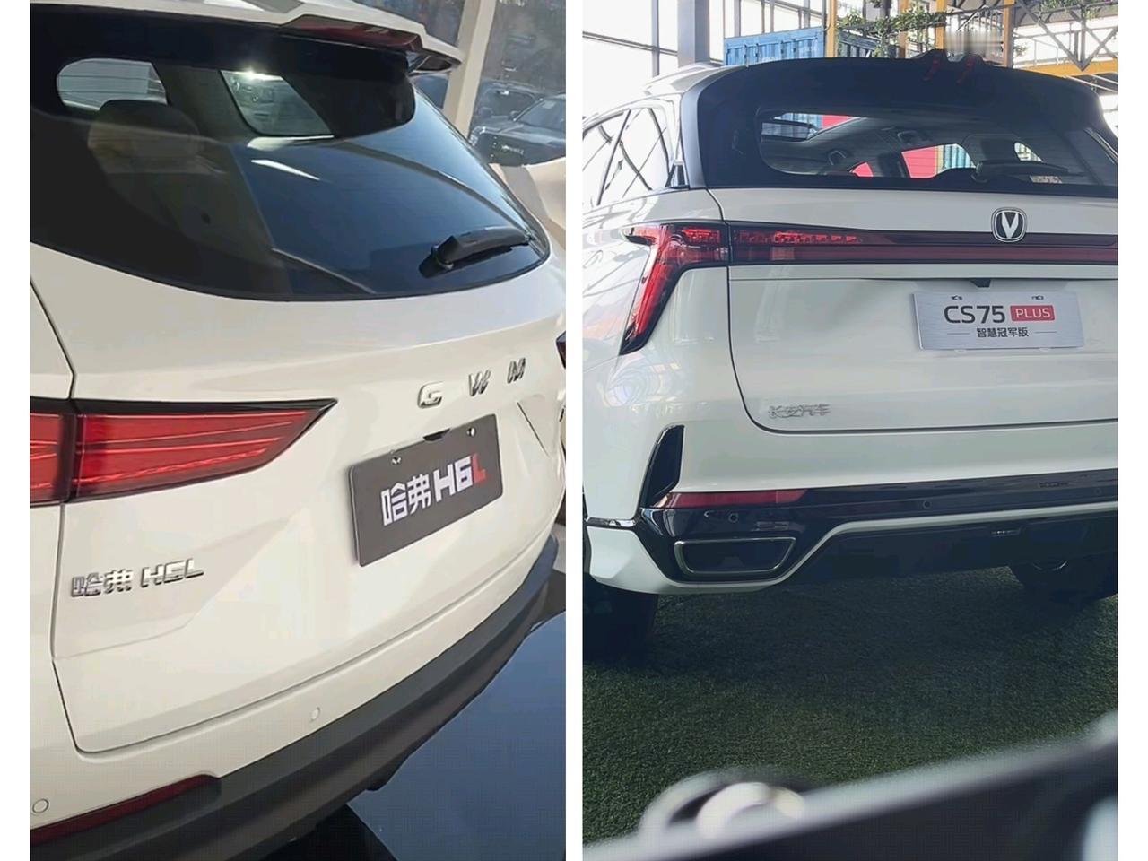 曾经的SUV销量排行榜的榜一榜二,价格已经下探到10万出头,同样更新了好几代。今天就来看看这两台车放在2025年甚至2026年应该怎么选: 1️⃣外观篇: 🔵前脸部分: 两台车都是燃油车,但前脸都是半隐藏式:哈弗H6L的前脸偏向于新能源车型的设计,简洁但没特点,而cs75plus的中网是密集的鳞片式的。两台车的中网设计开始走向两极分化。 🔵车尾部分: 哈弗H6L的尾灯部分改变很大,算是新的设计,如果这个版本延续下去还是能保留下特点的。cs75plus一直保留初代尾灯特点,辨识度略高。 💔明显缺点: 缺点①:前脸都采用的贯穿式灯带,如果没有车标,造型都非常接近,半斤八两。 缺点②:设计趋于新能源,油车味道都变淡了不少。 ✍🏻打分:cs75plus外观设计更年轻化,运动感更强一些,先+0.5分。 2️⃣内饰篇: 🔵相似之处: 同样是液晶仪表+中控大屏布局,中岛也都是手机无线充电+杯架。而且两车在中控下方都保留了一些必要的物理按键,这点还是值得好评的。 后排都标配出风口,放倒后都能得到一个差不多纯平空间, 🔵不同之处: 不同①:座椅风格 哈弗H6L是传统分体式座椅,长安CS75plus运动式一体式座椅,运动感更强。 不同②:换档方式 哈弗H6L采用的是哈弗最新设计语言,使用了怀挡,感觉更上档次。长安cs75plus是第三代的26款,还是传统档把式换挡方式。 ✅两车优点: ❤️H6L优点: 怀挡换档方式高端上档次,中岛区域空间更大,使用起来也方便一些。传统座椅可调节角度和范围更广泛,实用性强。 ❤️75PLUS优点: 内饰运动感更强,比较适合年轻人,而且中岛部分储物空间用了盖板设计,看着更加整洁。 ❎两车缺点: 💔H6L缺点: 中岛部分设计简单,给人一种硬塑料里“挖洞洞”的感觉,细节处不够精致。 💔75plus缺点: 因为采用的传统档把换挡,所以空间利用率要差一些,前面放手机的地方有些不方便。头枕不能单独调节,放倒休息时角度不太舒服。 ✍🏻打分:以我的角度来看,可能比较倾向于稳重一些的H6L,但对于没结婚的年轻人可能更喜欢75plus,特别是第四代也已经上市了。 两车平局。 3️⃣配置篇: 长安cs75plus只有1.5T,而哈弗H6L有1.5和2.0两种动力版本可选。 都以1.5高配对比,两车配置相差不多,但整体还是H6L的配置稍高一点。 ✍🏻打分:考虑两车价格差价,1.5T版本75plus性价比更高,但H6L可选范围大,两车平局。 📖总结归纳: 长安CS75PLUS和哈弗H6L从发布就难分好滴,直到现在,两车定位变得清晰了一些。总结如下: 年轻人预算低,人生第一台车选长安CS75PLUS更适合。 成家或性格沉稳,选择新哈弗H6L皮实耐造完全够用。【来自懂车帝车友圈】