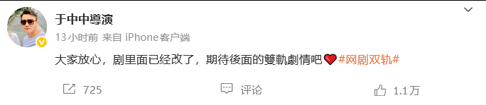 导演回应双轨冠夫姓双轨导演回应 15日,双轨原著 冠夫姓引发热议,对此回应称:“大家放心,剧里面已经改了,期待后面的双轨剧情吧❤️。”