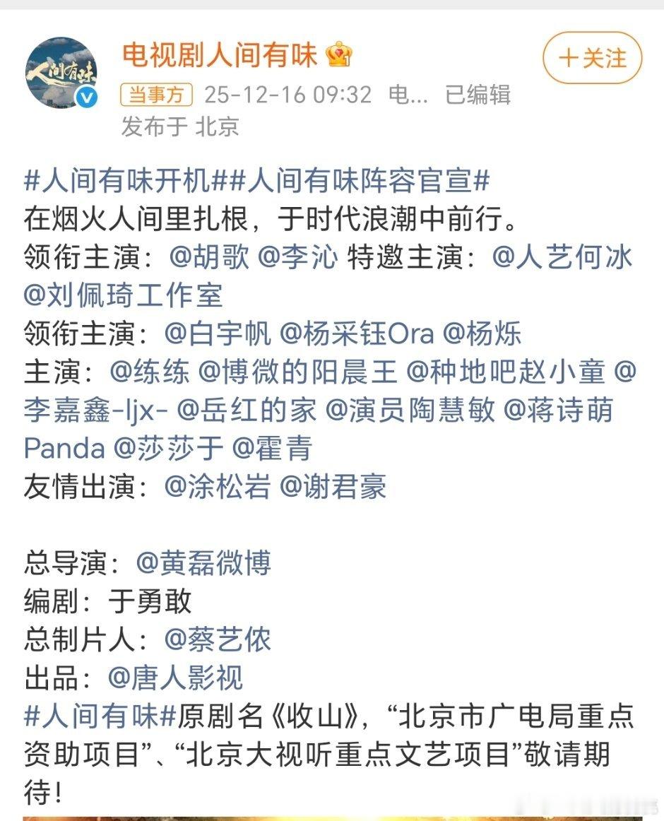 在各种番位头衔五花八门的今天老唐人的格式出奇地正常,没有大回车没有大空格没有单人单宣没有特意出演无意出演,正常的不能再正常了人间有味官宣胡歌李沁