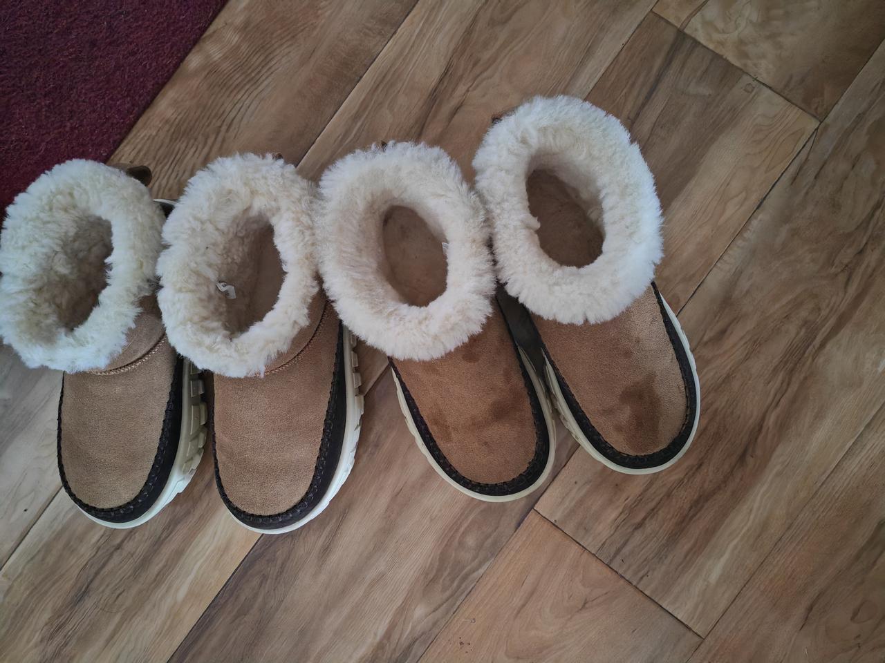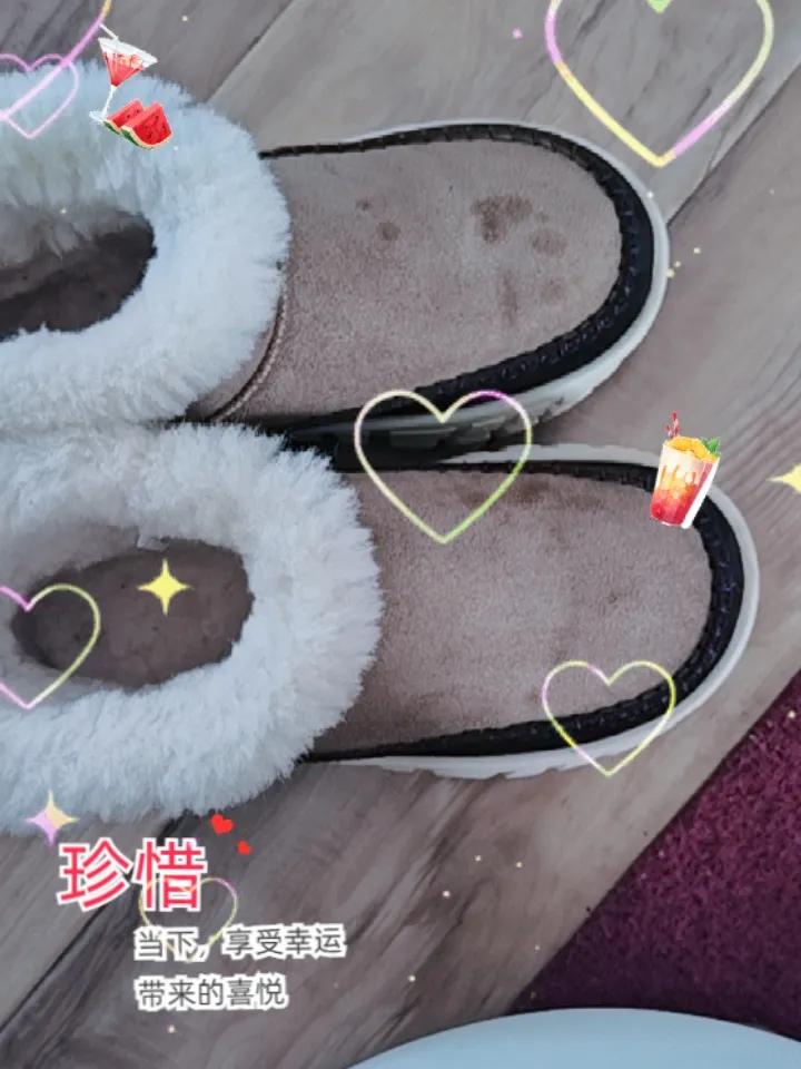 今年双十一,我在某宝买了两双雪地靴,女儿一双,我一双,我们的亲子装。 这鞋子保暖又舒适,特别是走路轻松方便,实在太喜欢啦。 我的一双前两天穿去吃席,鞋面沾上了油点,用湿巾擦了一下,还是有印子,晾干了浅了一点,这下倒好区分开了,不用看鞋底的鞋码就认得出哪是女儿的,哪是我的。