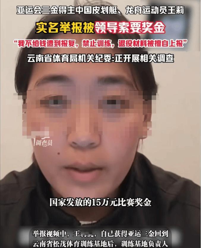 从冠军到抑郁!云南龙舟名将因 15 万奖金遭打压 如今盼讨回公道体育 21 岁斩获杭州亚运会三枚龙舟金牌,成为云南首位亚运三金得主的王莉,人生却因 15 万元国家奖金陡转直下 —— 省队负责人要求她上交奖金遭拒后,她被禁止训练、储物柜清空,相关人员甚至谎称其有伤病阻断参赛之路。 从万众瞩目的冠军沦为训练场外的局外人,巨大的落差让王莉陷入崩溃:夜不能寐、噩梦缠身,昔日轻松挥桨的手臂连水杯都握不稳,最终确诊重度抑郁。两年间她多次反映情况却屡屡被推诿,唯有夺冠时用过的红黑配色龙舟桨,成了她撑下去的精神寄托。 23 岁的她最终选择实名举报,只求拿回训练权利、为十几年运动生涯讨公道。2025 年 12 月 15 日,云南省体育局宣布成立调查组彻查此事。如今的王莉一边治疗,一边对着龙舟桨做康复训练,桨叶上的阳光,仿佛重现了亚运领奖台的荣光。她的遭遇,撕开了基层体育管理的漏洞,也让人看见冠军光环下运动员的脆弱与坚守。