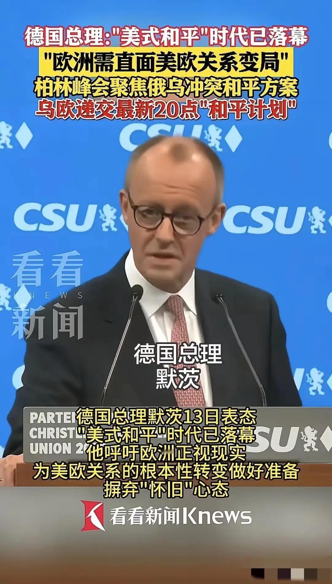 德国总理默茨,在当地时间12月13日正式对世界表态,不论最终俄乌冲突以何种方式落下帷幕,德国都已经在心中有了自己的全面决定。 他表示,不管是美国总统特朗普的美式和平,亦或是俄罗斯总统普京的俄式扩张,它们都是大国战略,全部都是以牺牲别的小国来做垫脚石,哪怕是盟友也不例外,一概是拿来收割的,事实就摆在那。 这话说得真够直接的。默茨没绕弯子。他把欧洲最不想听的话说出来了。欧洲一直靠着美国。现在美国可能不想管了。 是美国和欧洲倒逼俄罗斯扩张的,没有你们的东扩,没有你们的颜色革命,没有你们拱火乌克兰反俄,俄罗斯那样闲心去扩张,俄罗斯自己的领土本身就够大。 默茨说对了一半都是大国利益。另一半北约如果不一味想着东扩,乌克兰能是今天国破家亡?罪魁祸首是北约欧盟,为了利益利用乌克兰打了一场不对称代理人战争! 俄罗斯打仗打的成瘾,早期的二战,如果没有德国,俄罗斯也会扩张,这几年亚洲局部'战争,阿富汗,二伊,车臣……,都是为战争做准备。德国人精明,俄罗斯会报二战的仇吗?自己先强大。 美欧在玩双璜,把乌克兰肢解,只有像立陶宛的乌克兰才能加入欧洲,否则就是南联盟的内斗战,迟早要分解乌克兰,不然俄罗斯也加入北约了。为什么不要呢?