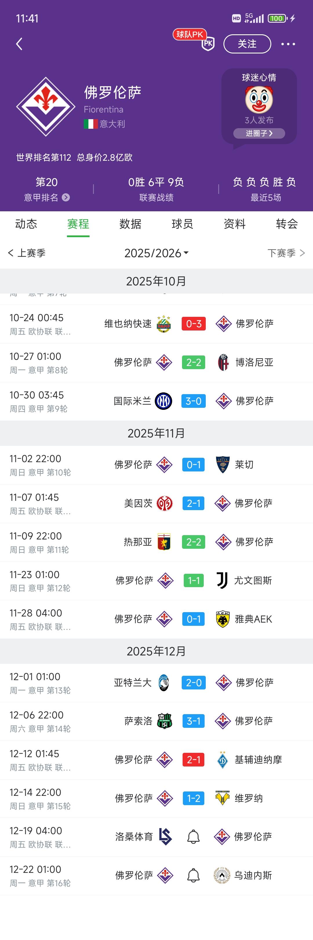 上赛季说曼联降级,本赛季说利物浦要降级,这些豪门是不会降级的,但是一些小球队就难说了。 意甲佛罗伦萨只积6分,一场比赛没赢,在意甲倒数第一,这才是真降级。 他们最近两个月就赢了两场欧协联,快降级还为意甲赚欧战积分,真汉子![捂脸]