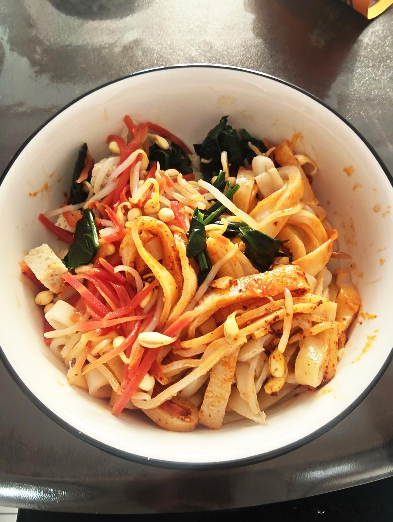 今天中午这顿饭是,老婆休假在家蒸的凉皮,这大冬天的中午吃一碗凉皮,还是挺美的。