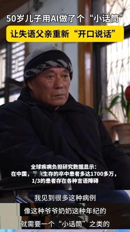 河南男子用AI让失语父亲重新发声AI的温度从不是革命叙事,而是对失语者的温柔关照!一个小应用照亮隐秘需求,让科技的光,暖到每一个角落AI为障碍人士发声