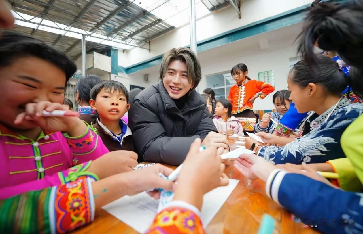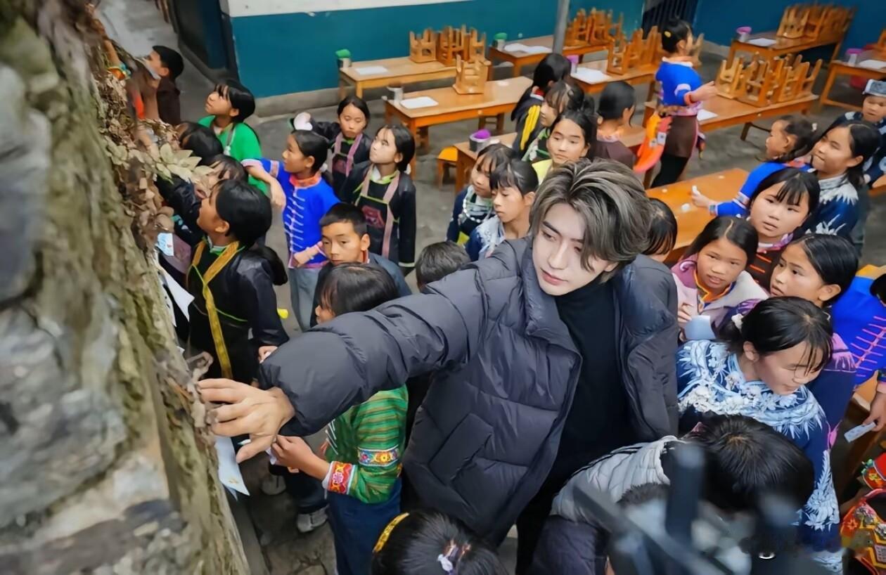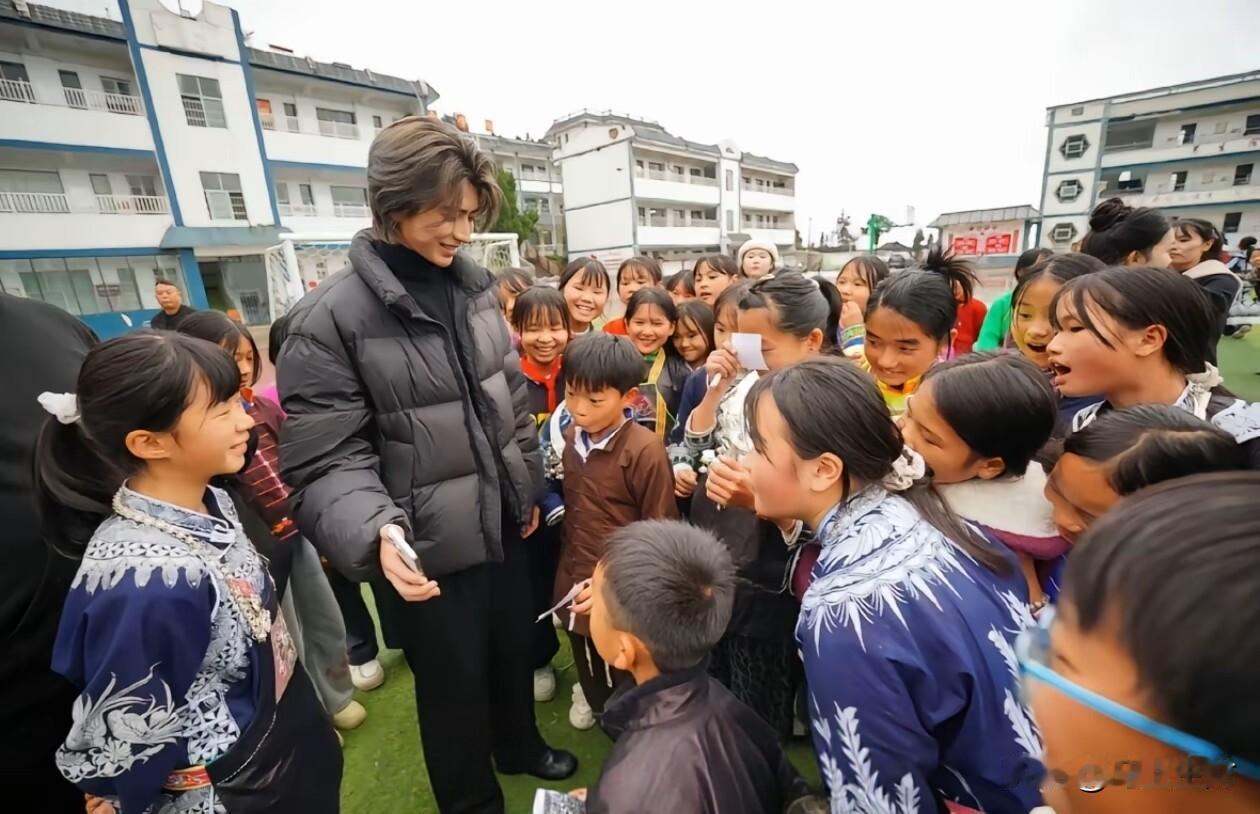 蔡徐坤这次去贵州丹寨做公益,真的太圈粉了。 12月12日,他跟随公益项目,无预告无热搜地扎进深山。11小时的车程,他毫无怨言。到了雅灰小学和麻鸟村,他和孩子们互动超暖心,鼓励他们唱歌,一起写梦想。 他穿上苗族服饰,和孩子们学“锦鸡舞”,虽动作笨拙但真诚满满。银饰叮当作响,和孩子笑声交织。他还发现害羞小姑娘,耐心鼓励。 有网友说他“做到了流量是一种责任”,确实,这种低调又用心的公益,才是明星该有的模样。