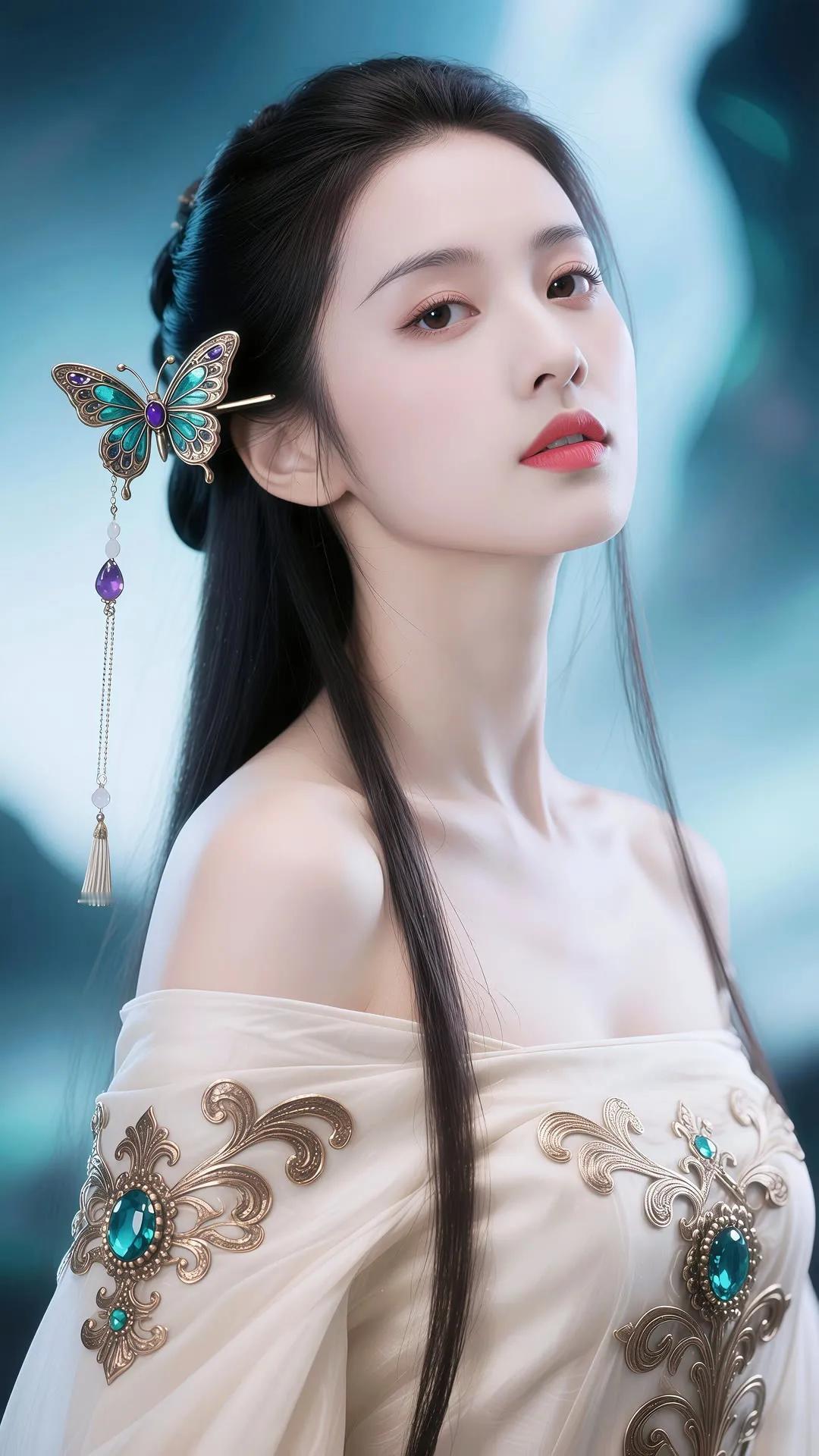 梦幻古风少女,轻盈纱裙,珠光闪闪,宛如仙子降临。