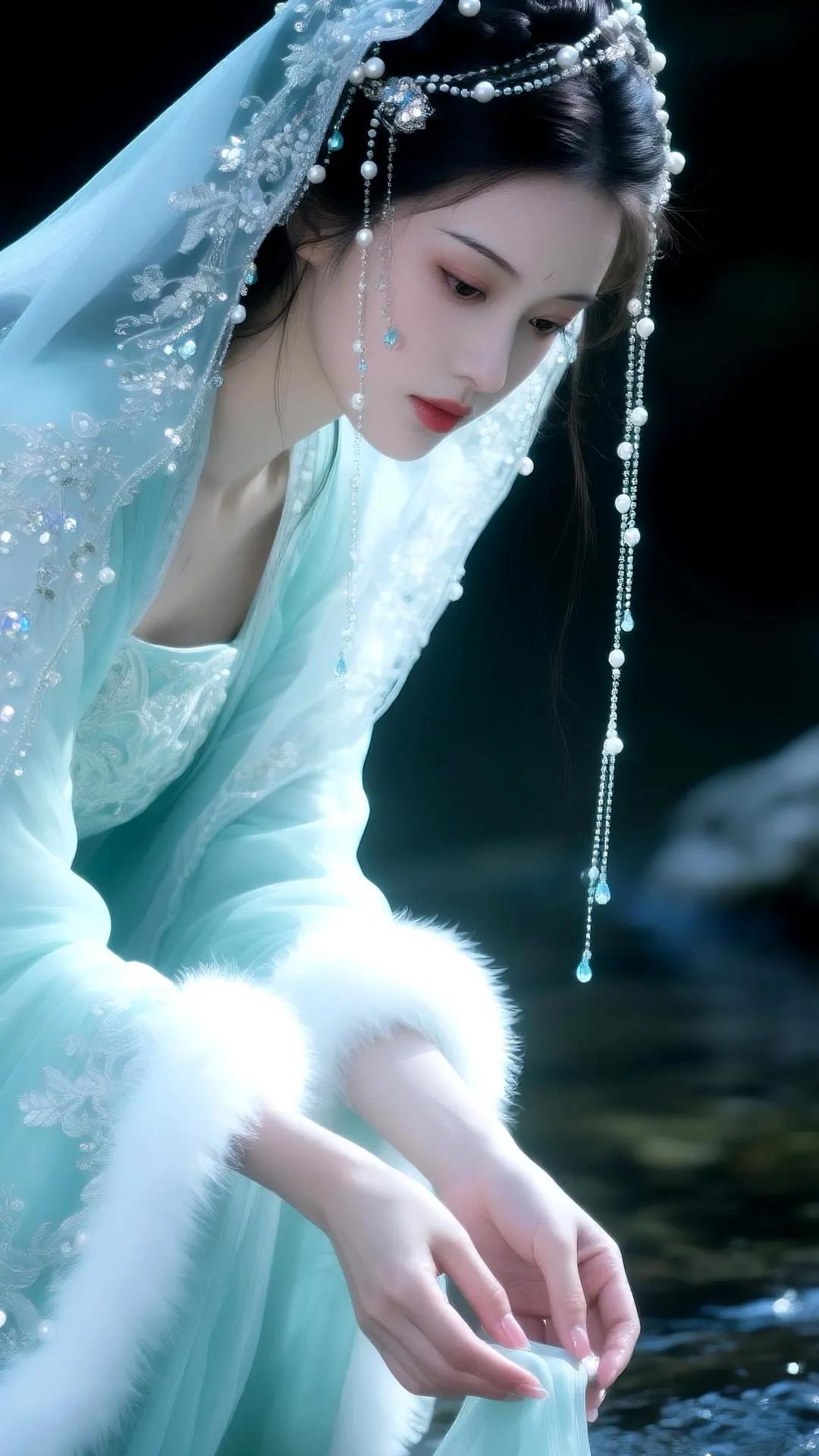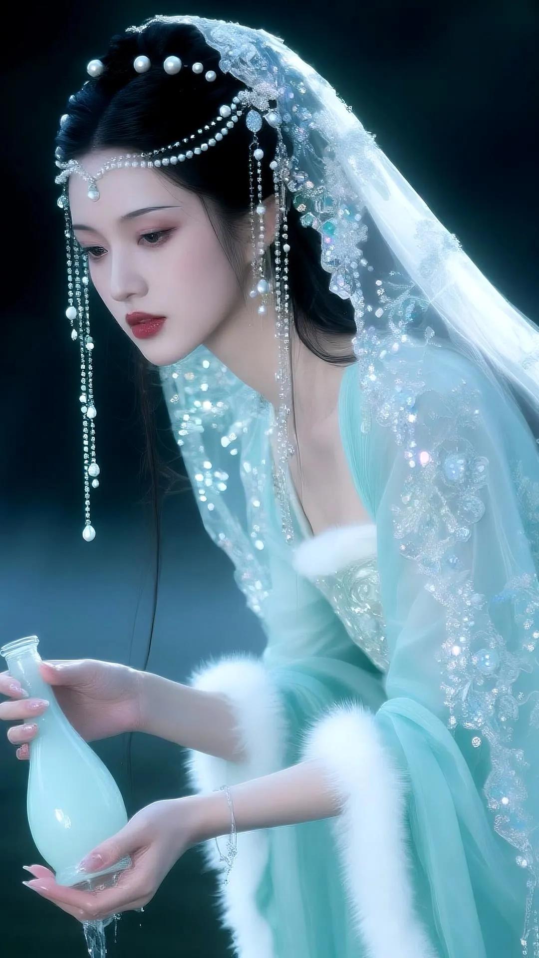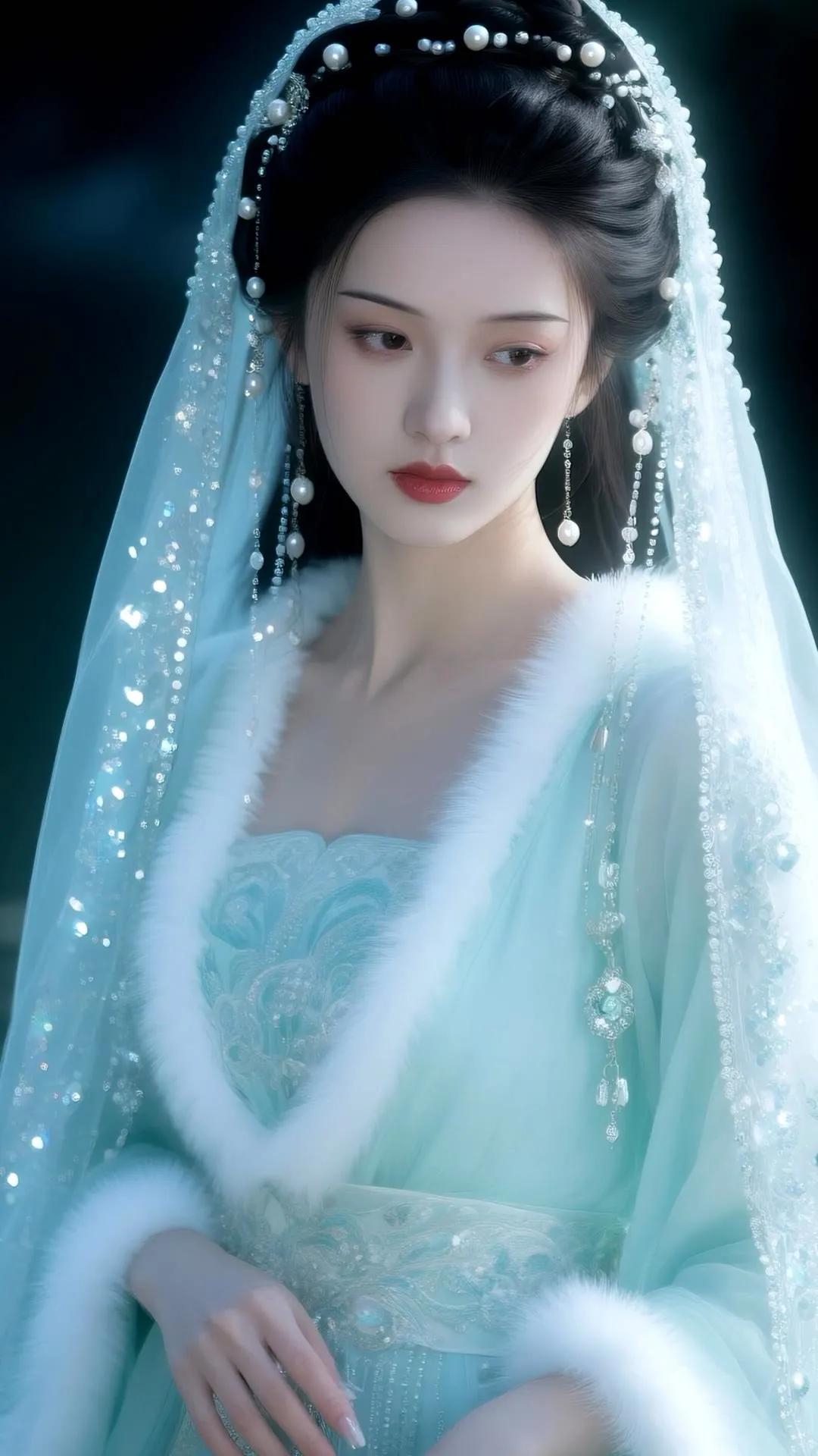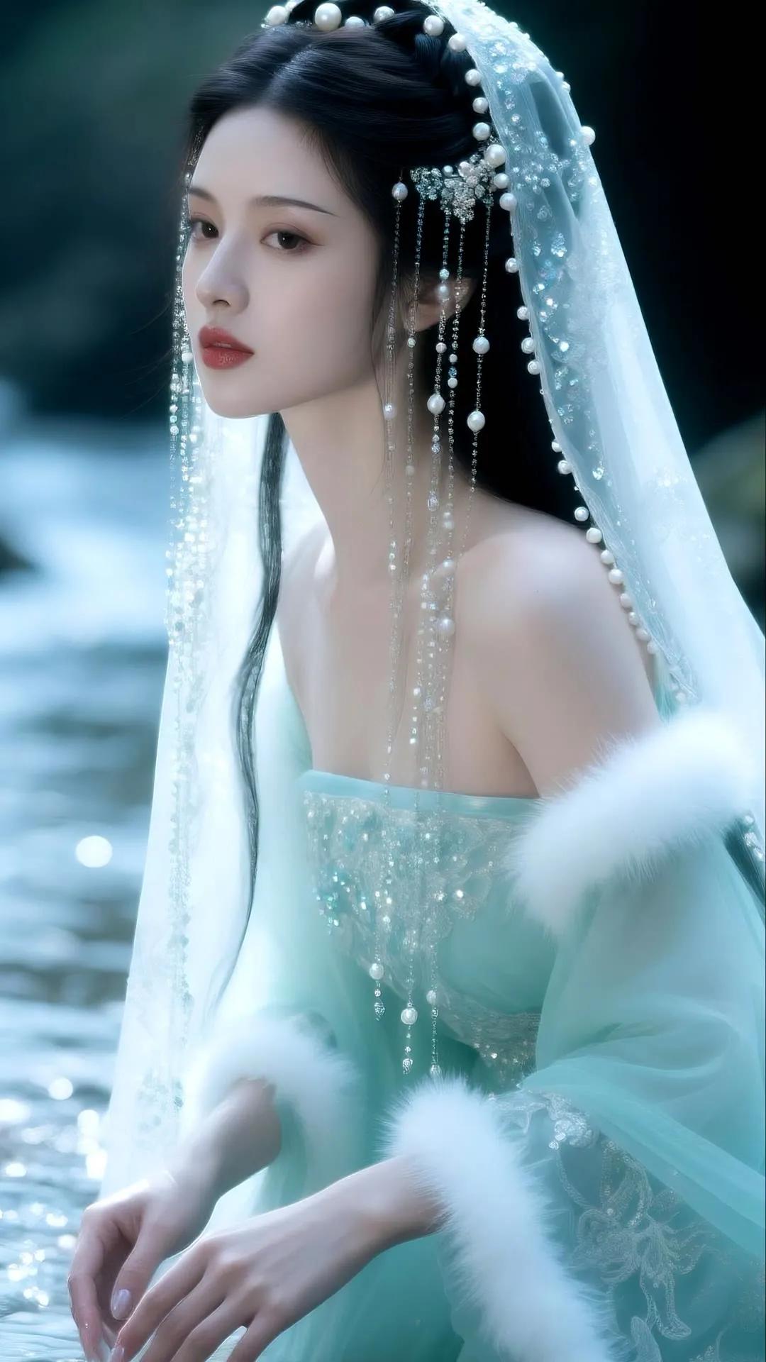 梦幻古风少女,轻盈纱裙,珠光闪闪,宛如仙子降临。