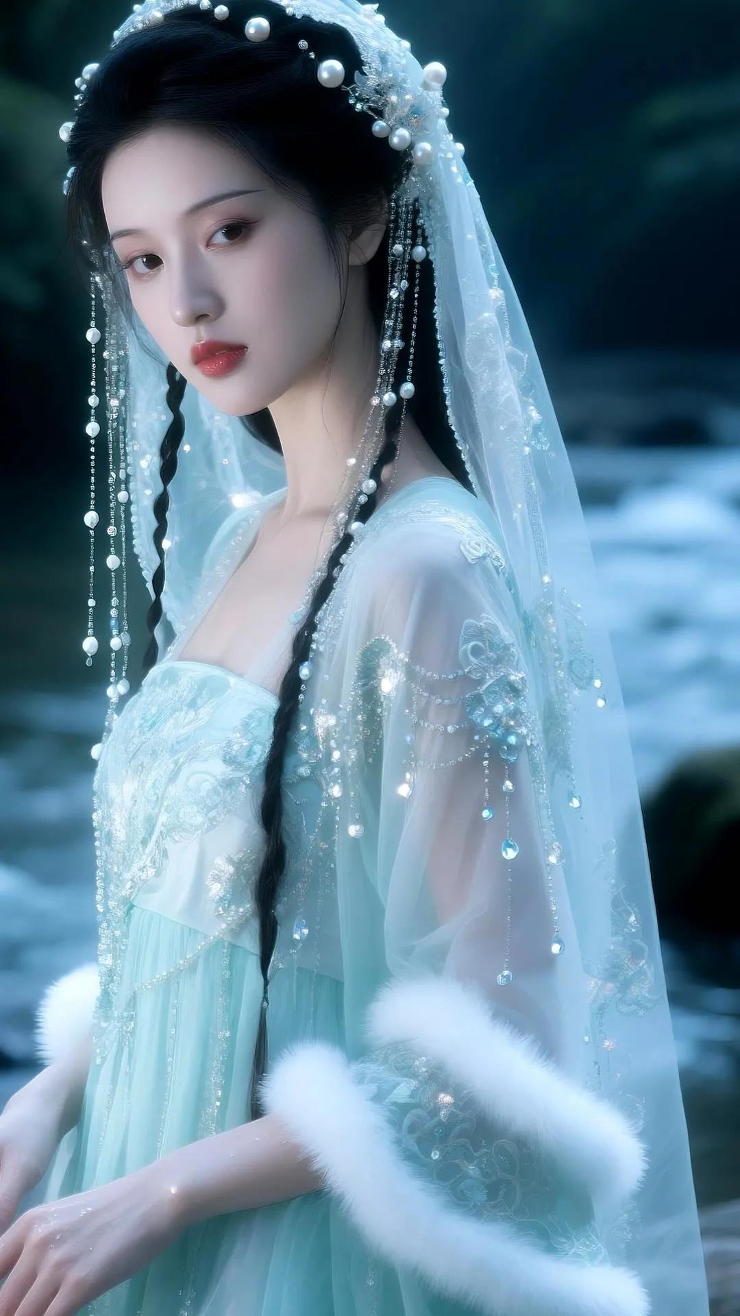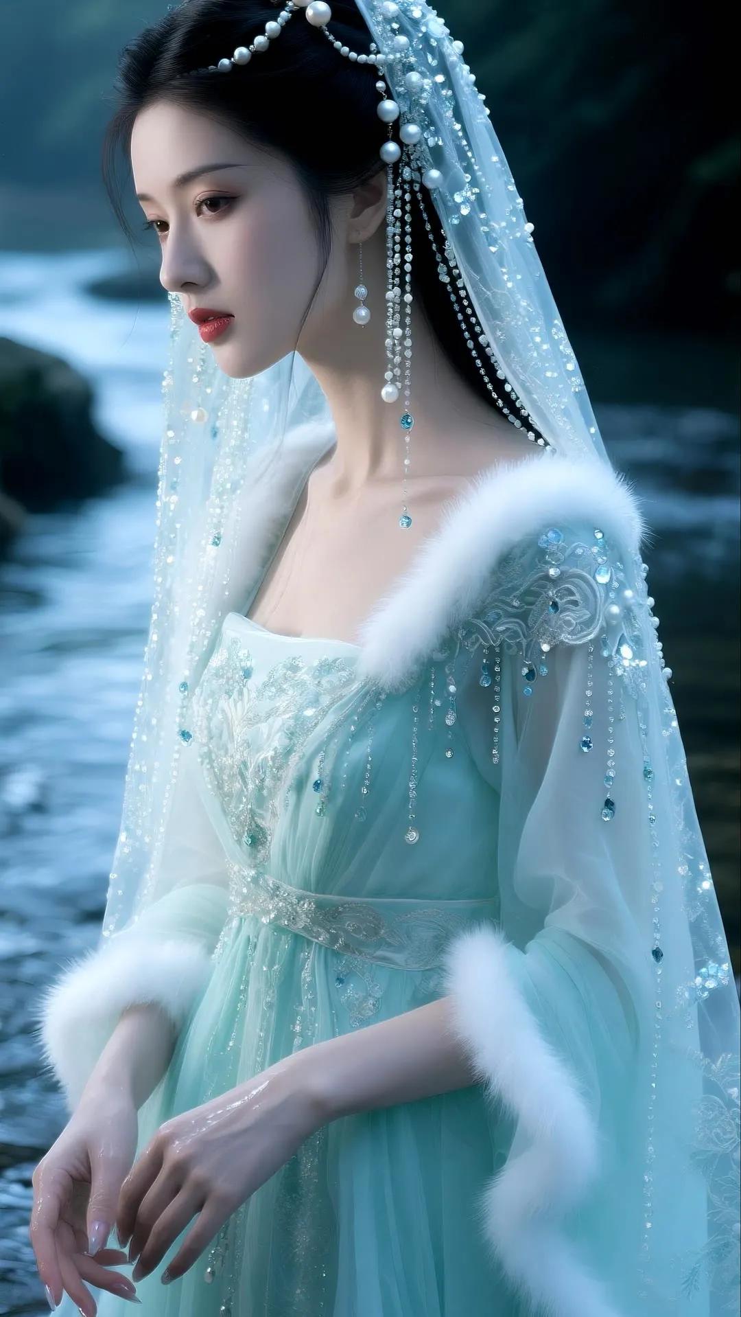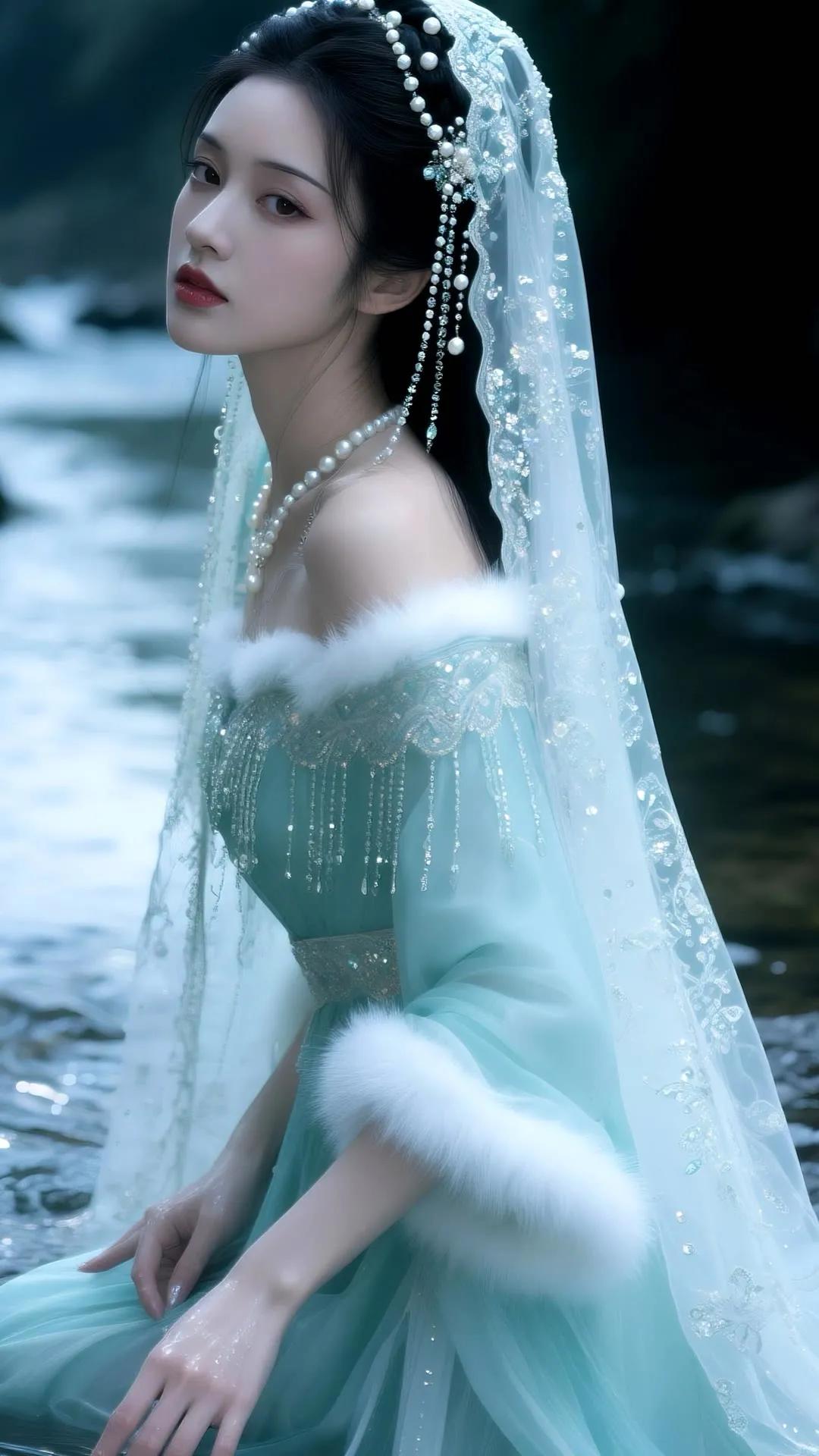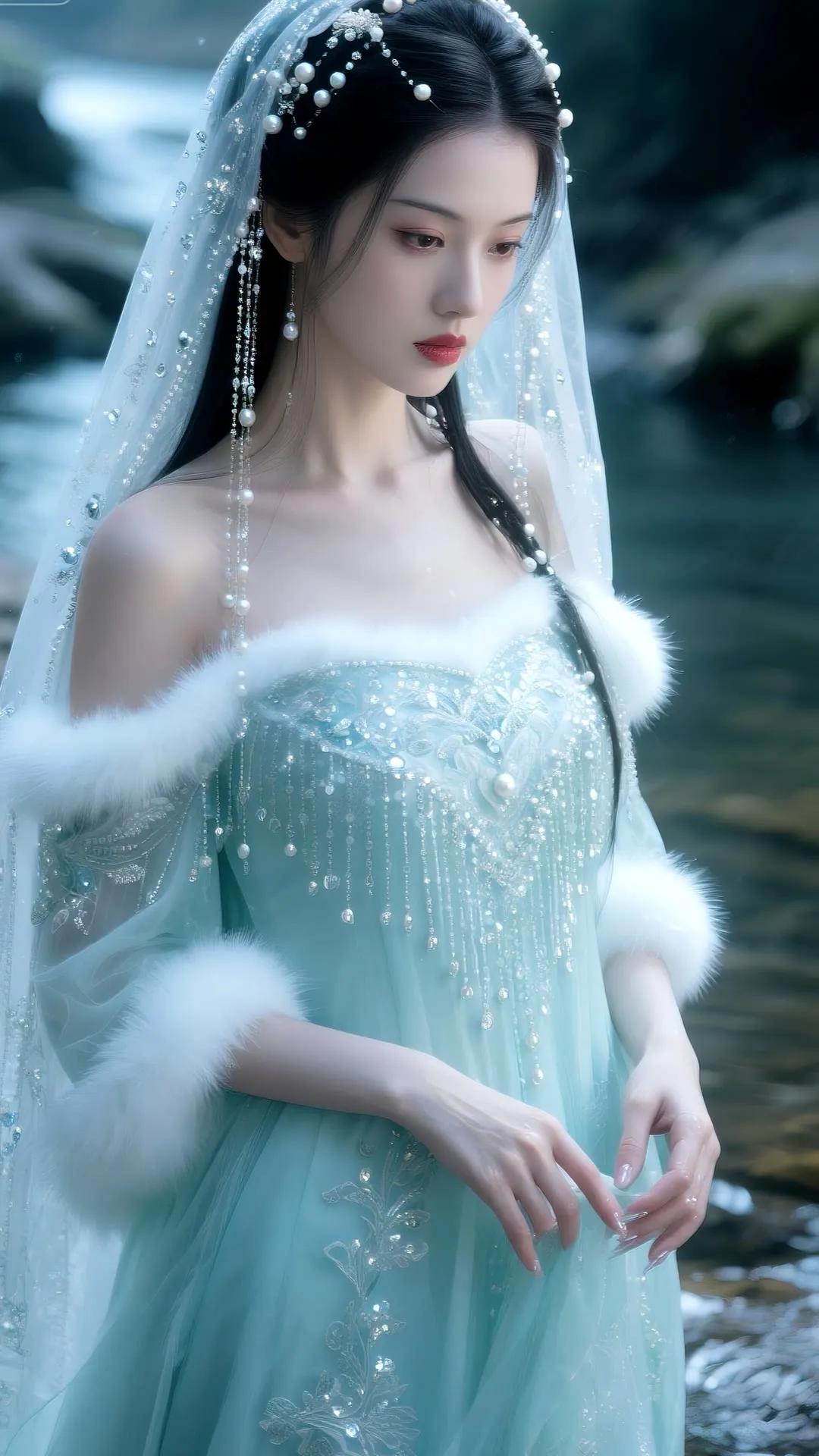 梦幻古风少女,轻盈纱裙,珠光闪闪,宛如仙子降临。