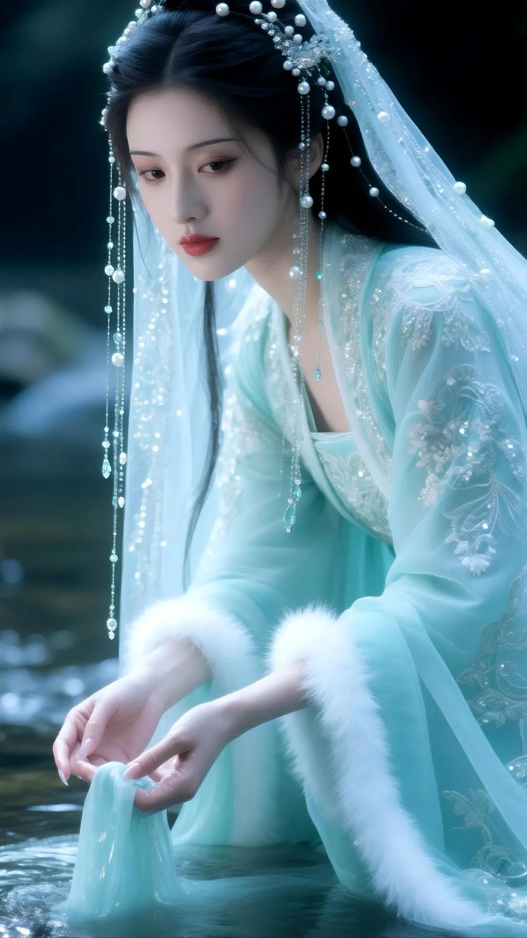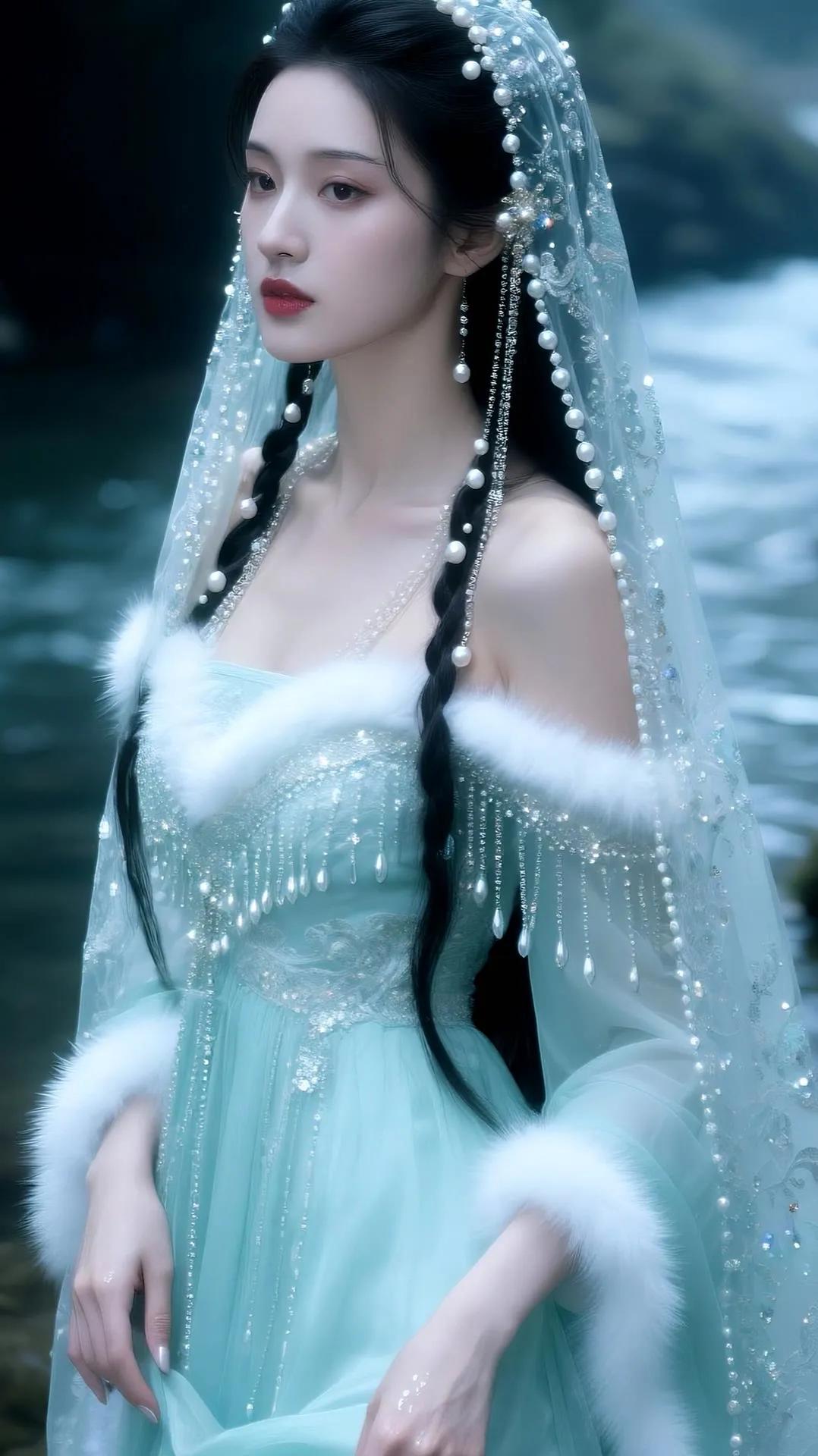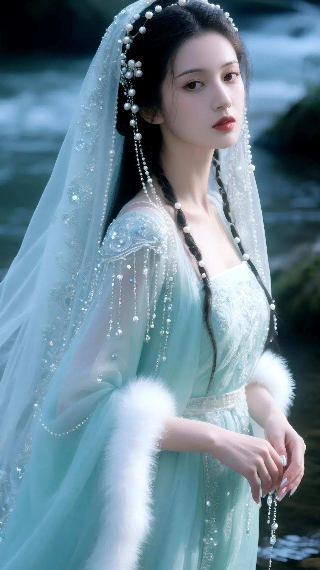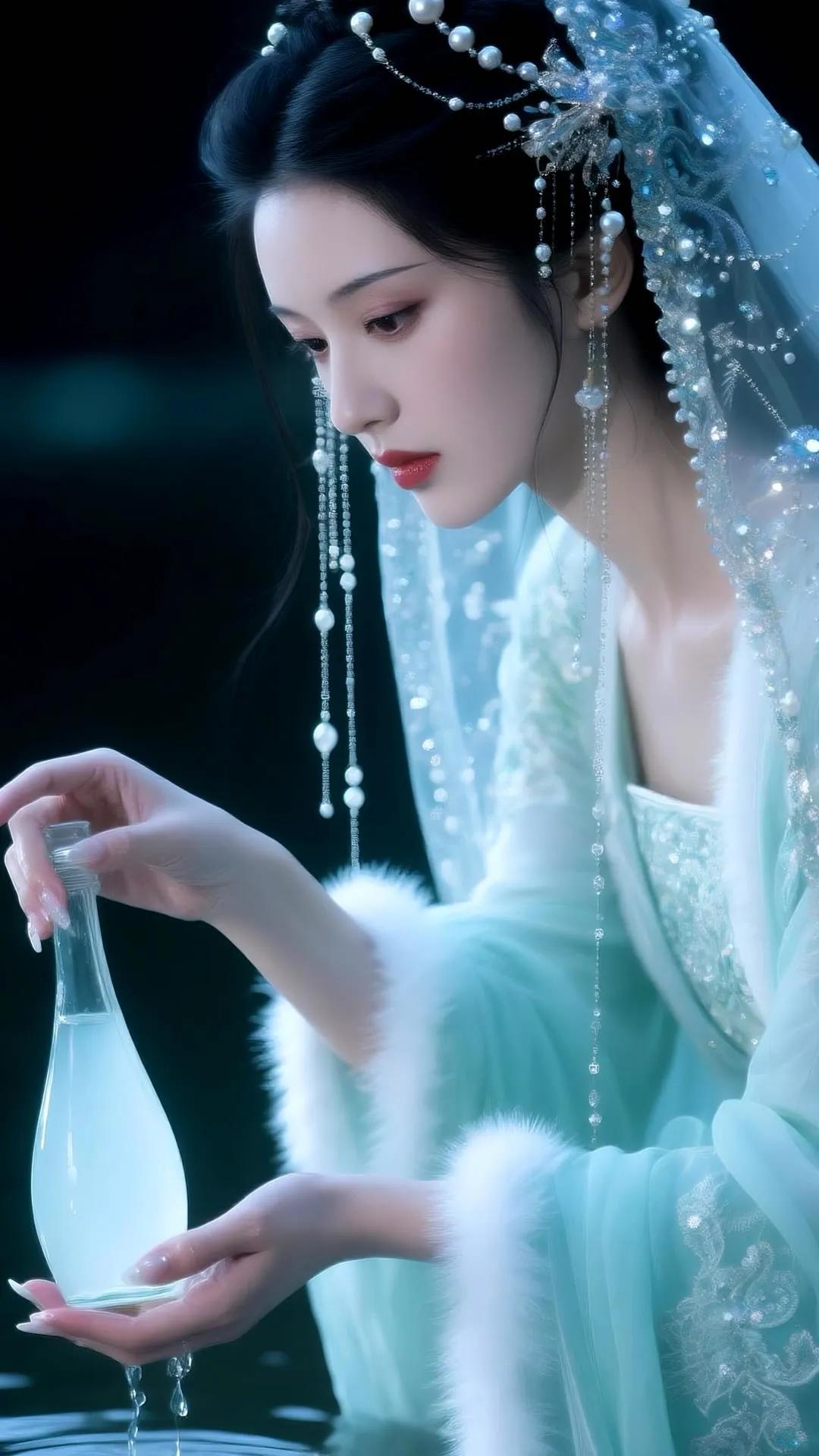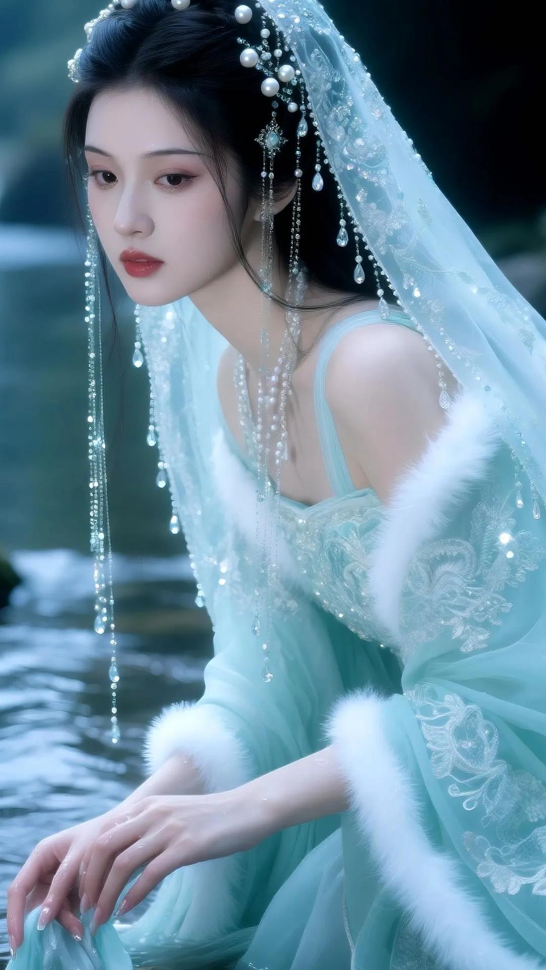 梦幻古风少女,轻盈纱裙,珠光闪闪,宛如仙子降临。