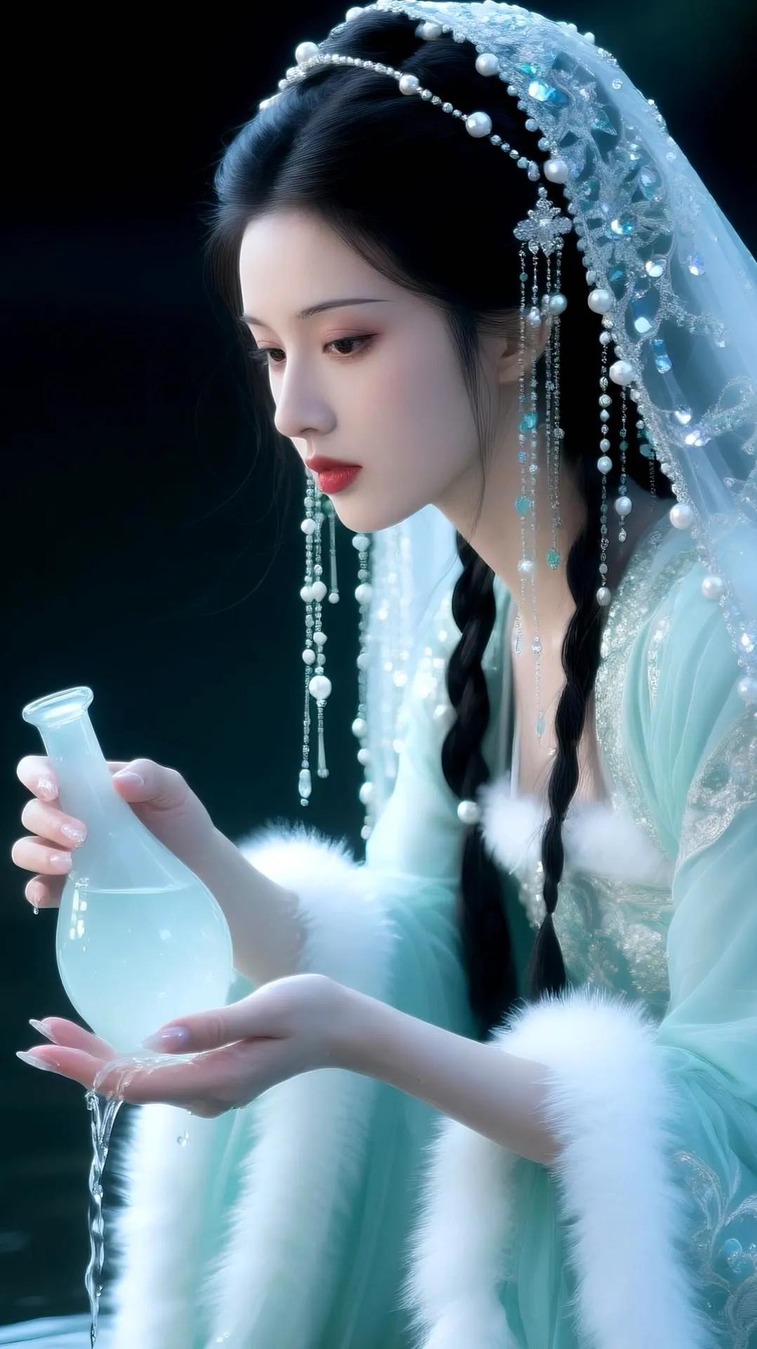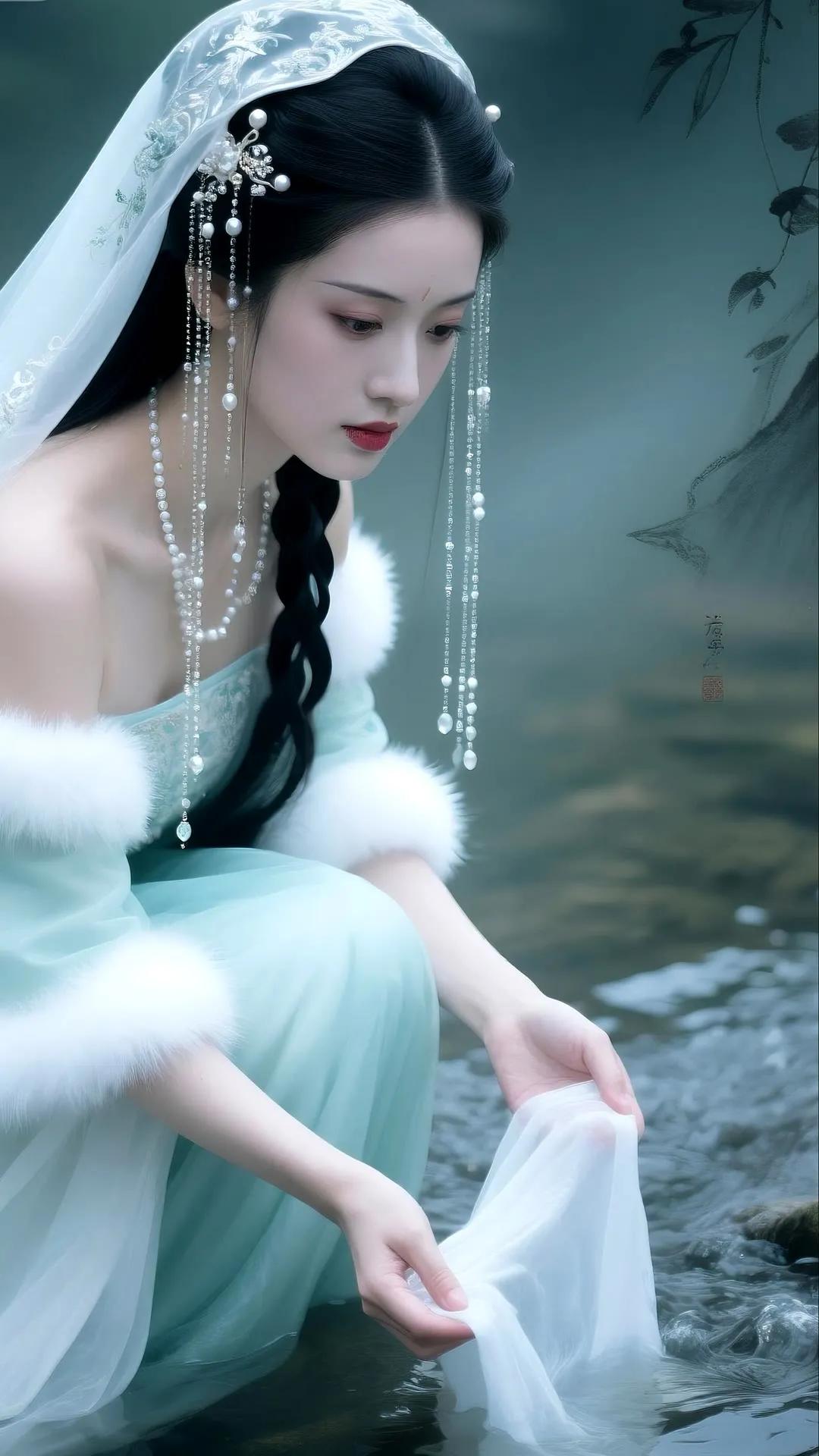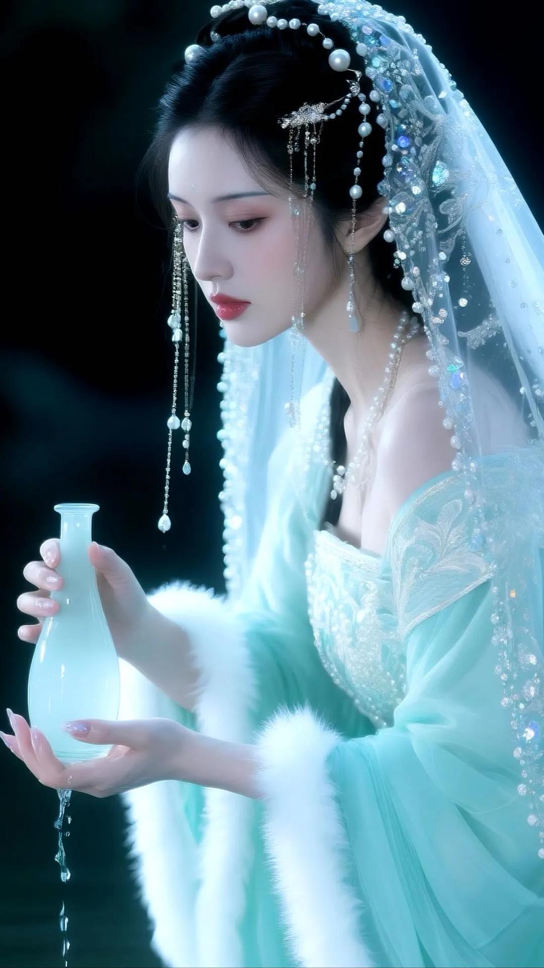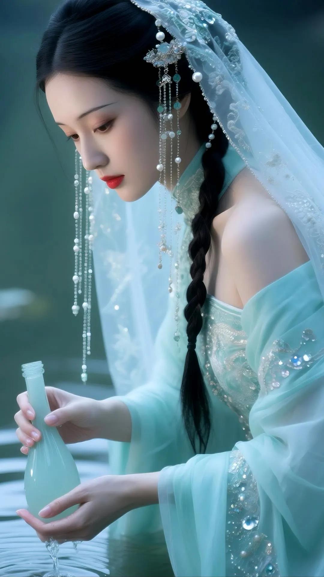 梦幻古风少女,轻盈纱裙,珠光闪闪,宛如仙子降临。