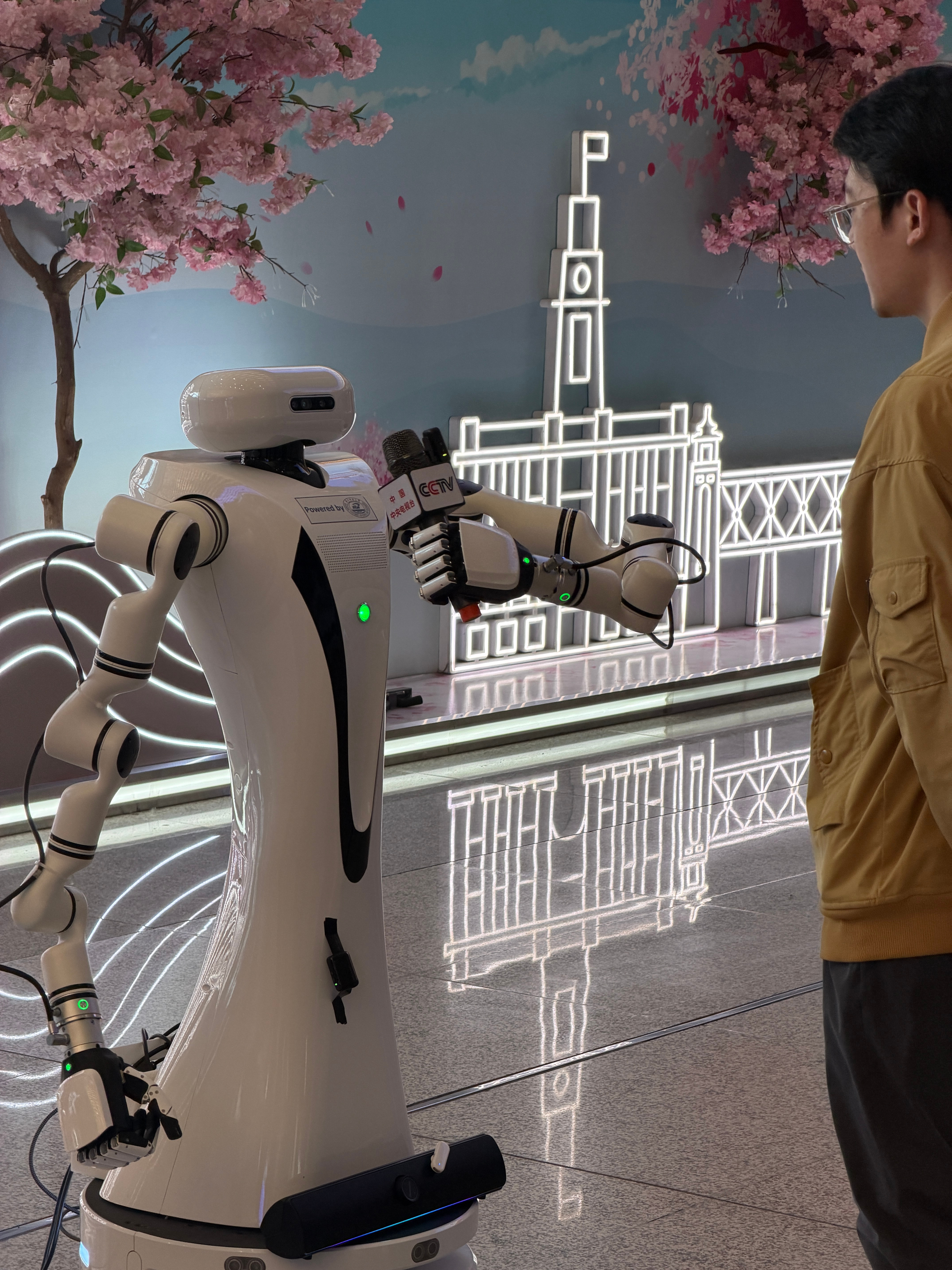 CCTV央视采访都开始用机器人了🤖新闻播报稿子AI准备好直接上机器人,怪不得就业环境这么卷,机器人都来抢活儿了 武汉·武汉站