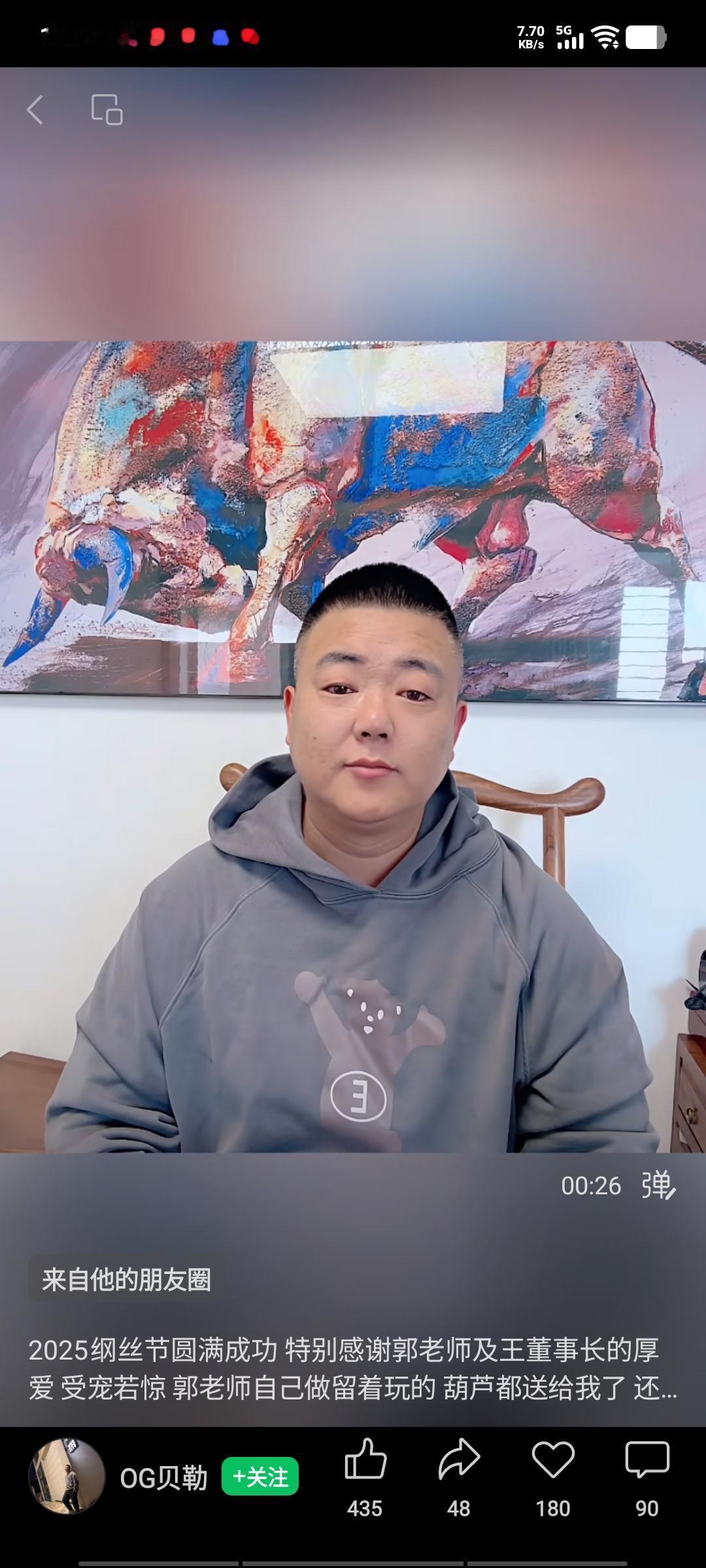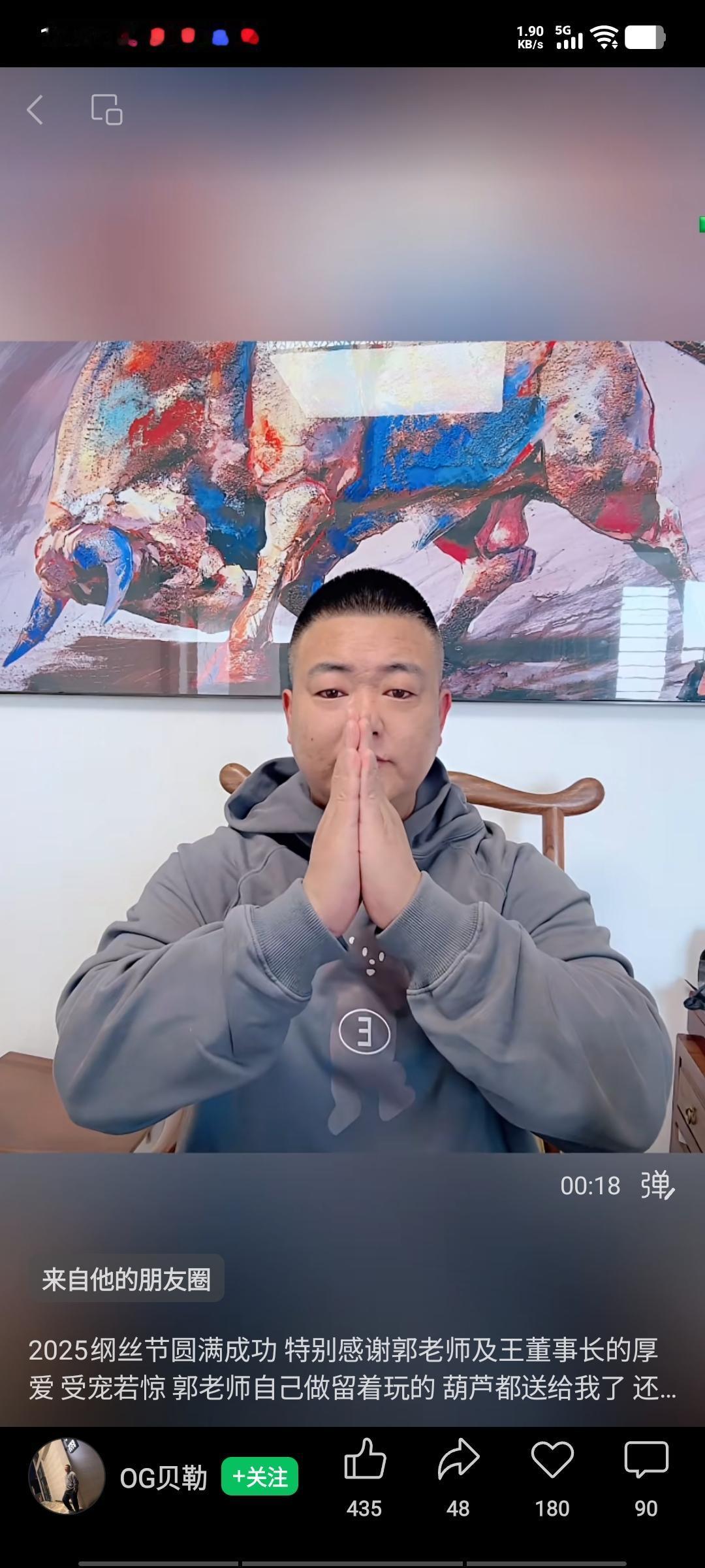 网红砸五贝勒参加了德云社的纲丝节,获王惠董事长接见。他不仅与董事长等人一同用餐,还得到班主把玩过的一枚精美葫芦。贝勒十分感动,受宠若惊、欣喜若狂。 在直播间里,贝勒先是祝贺纲丝节圆满成功,对郭老师和王董事长的厚爱表达了深深感谢。接着,他讲述了活动中与德云社互动的一些细节。虽未透露具体交流内容,但那枚赠送的葫芦无疑是对贝勒的无声肯定,寓意着期待贝勒弘扬正能量,继续支持德云社,为正义发声,不断提升自身综合素养。贝勒应把此次见面当作动力的加油站,将直播事业经营得更加出色。