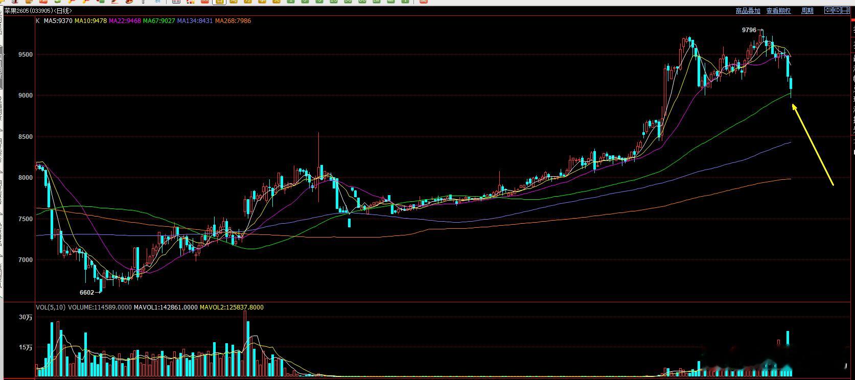苹果今天早盘跌破9000点后形成的反弹正好是67日均线小幅破位反弹。附