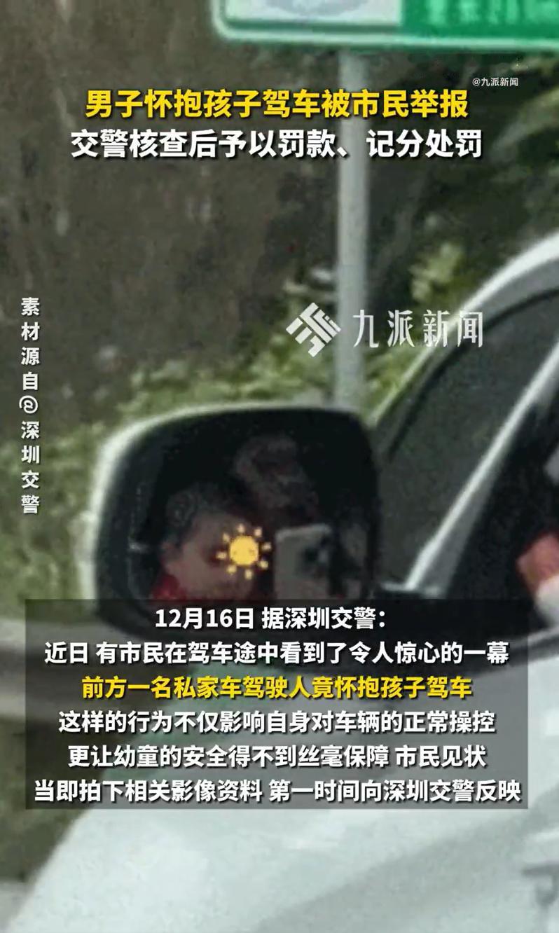 男子抱着小孩开车被罚 12月16日,据深圳交警:近日,有市民在驾车途中看到了令