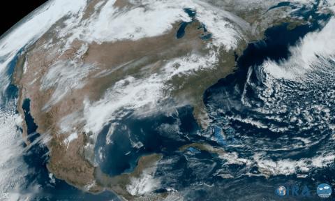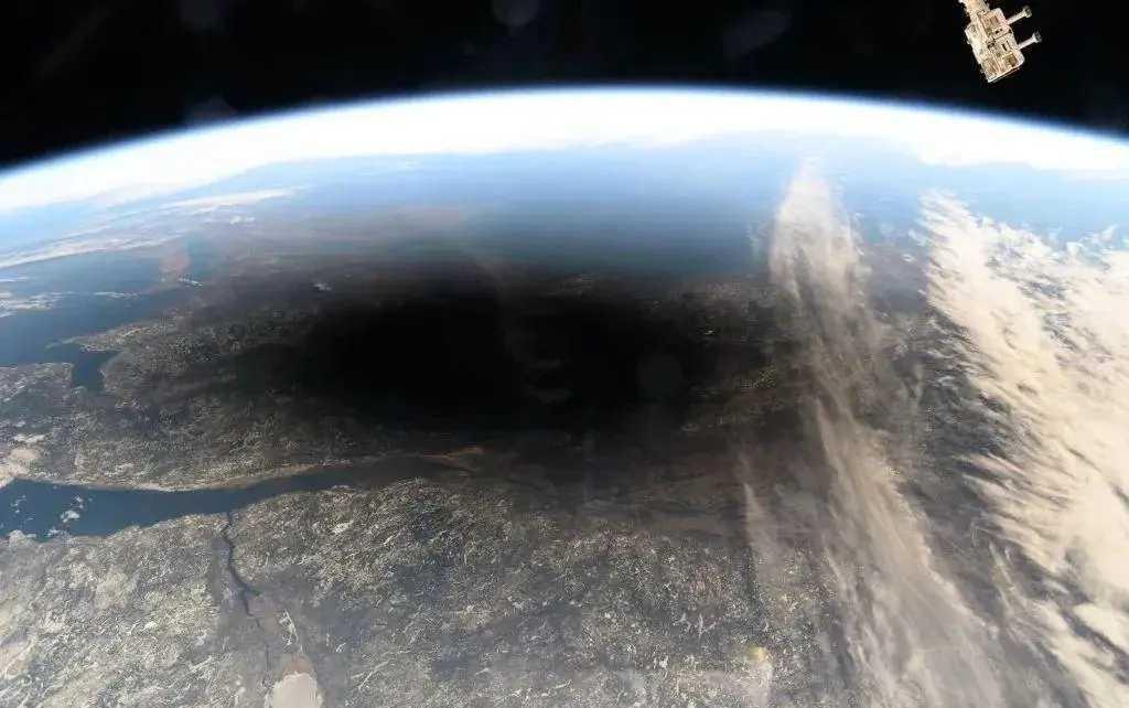 太空观测的日全食,这个巨大黑影是正在发生的日全食,它的速度能达到8000公里每小时...
