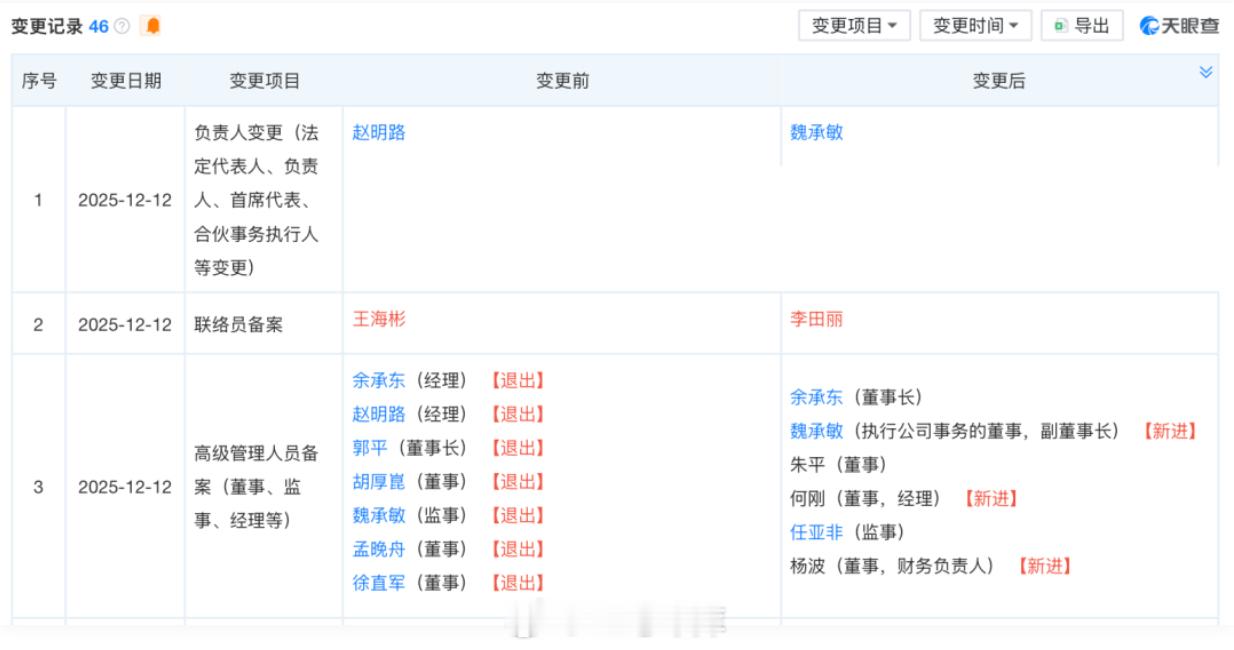 天眼查显示,华为终端有限公司发生工商变更,郭平卸任董事长,由余承东接任,孟晚舟、徐直军等卸任董事,同时,多位高管发生变更。孟晚舟卸任华为终端公司董事