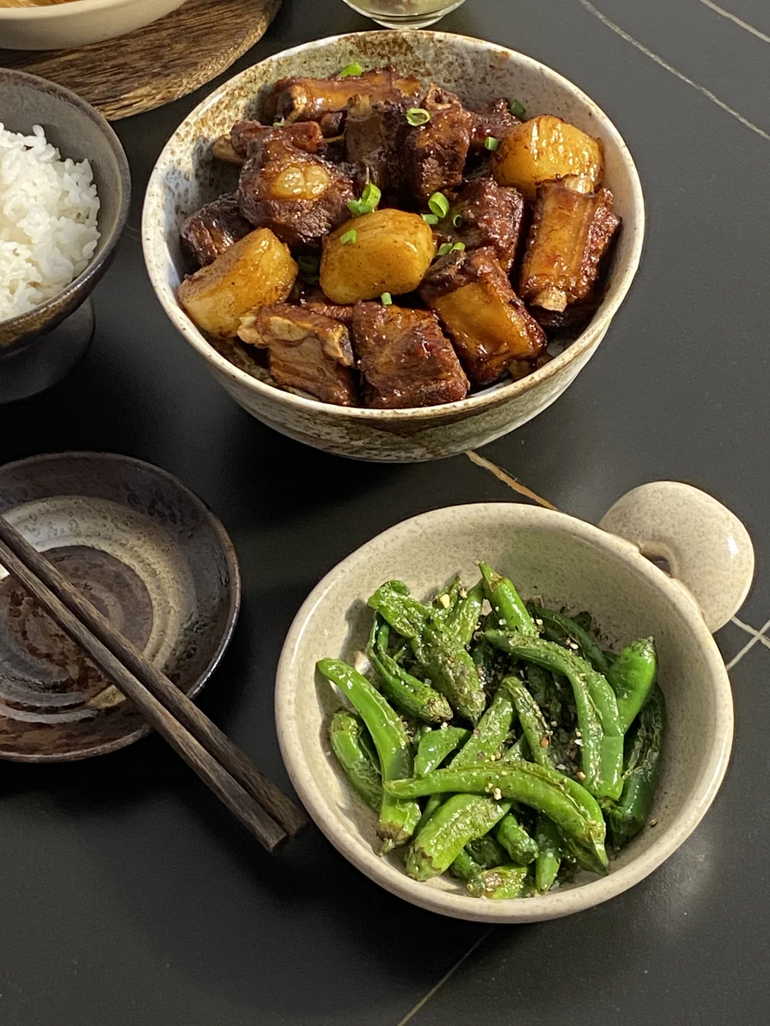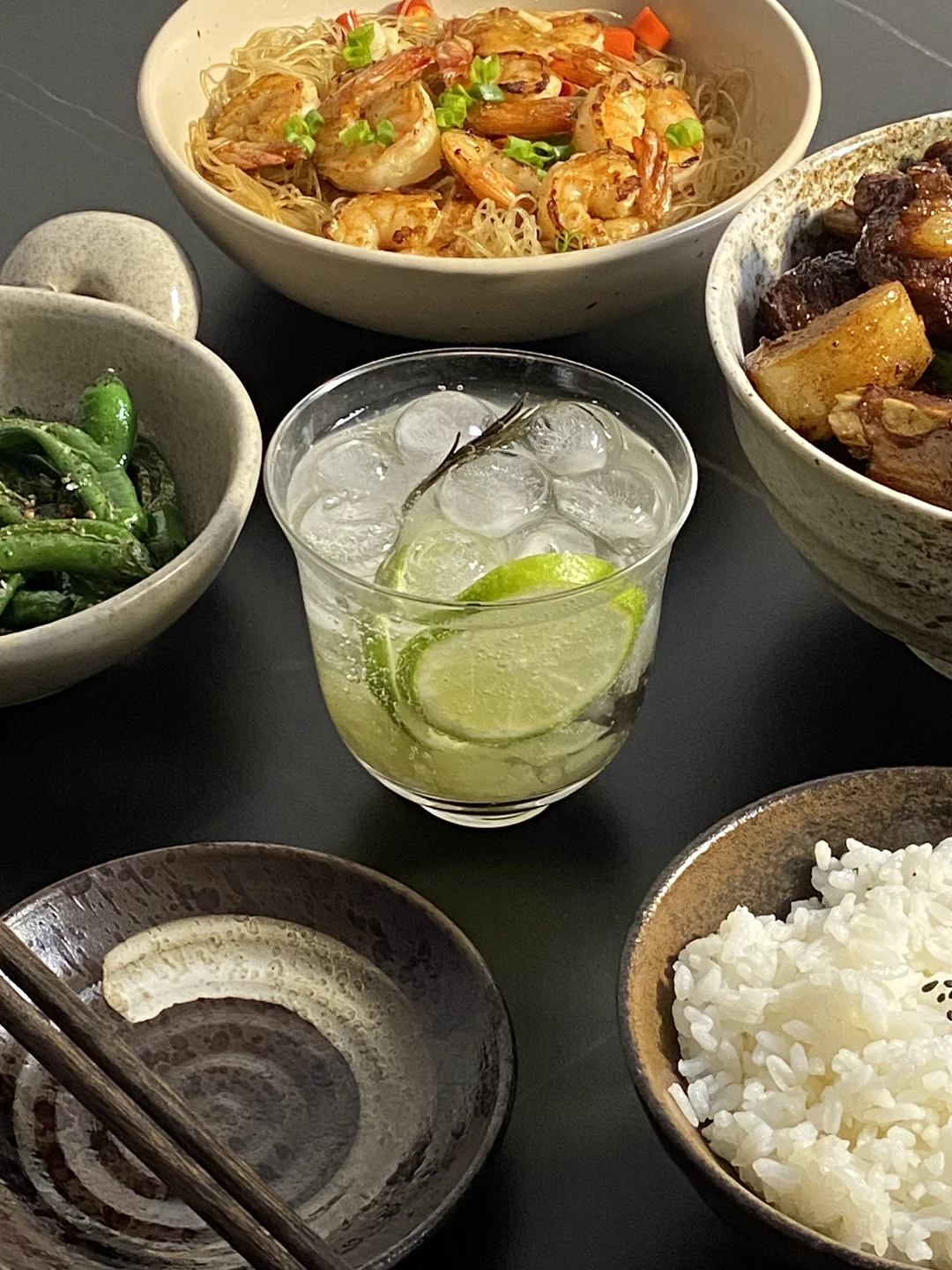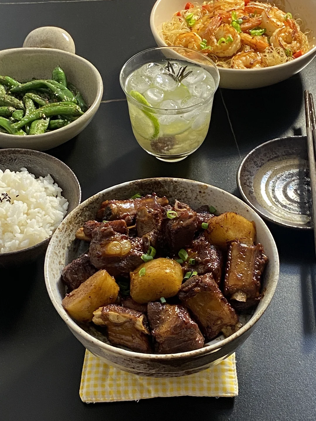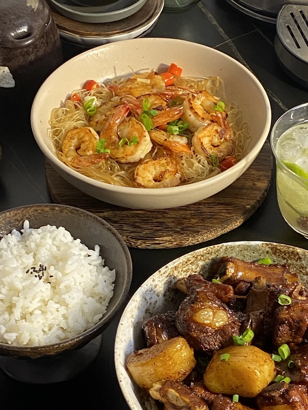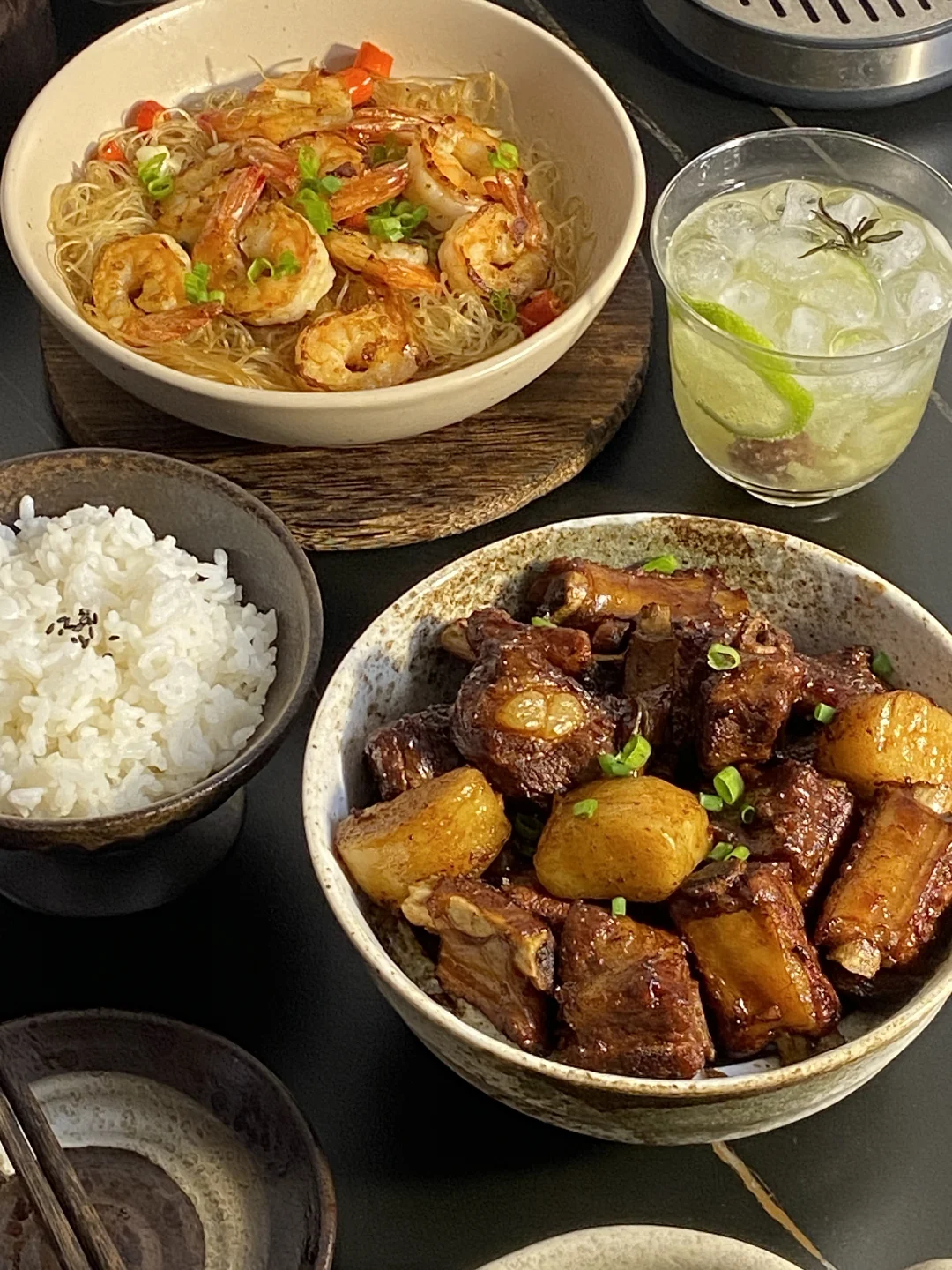 又做了年糕排骨,家里人都说爱吃,蒜蓉粉丝虾也是餐桌上的老搭档了,简简单单一顿家常菜,配着一杯无糖汽水,一顿吃好!