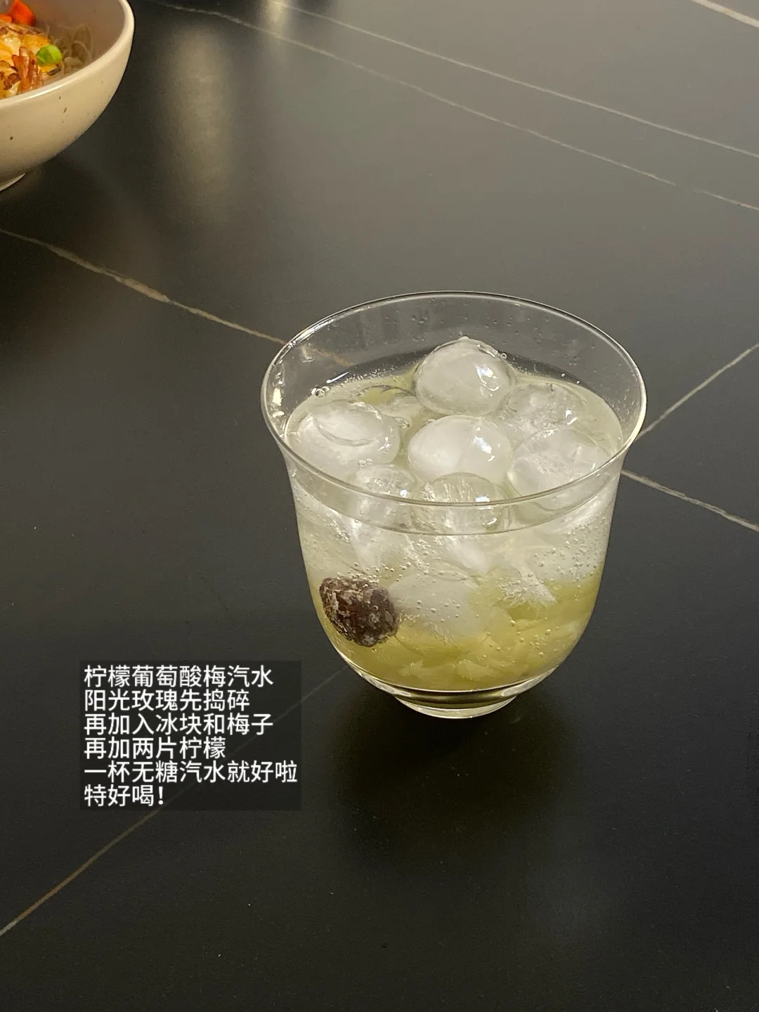 而且说实话,这么好吃一顿,还好有我特调的柠檬葡萄酸梅汽水,柠檬+葡萄+梅子+无糖汽水,用来解腻嘎嘎好!