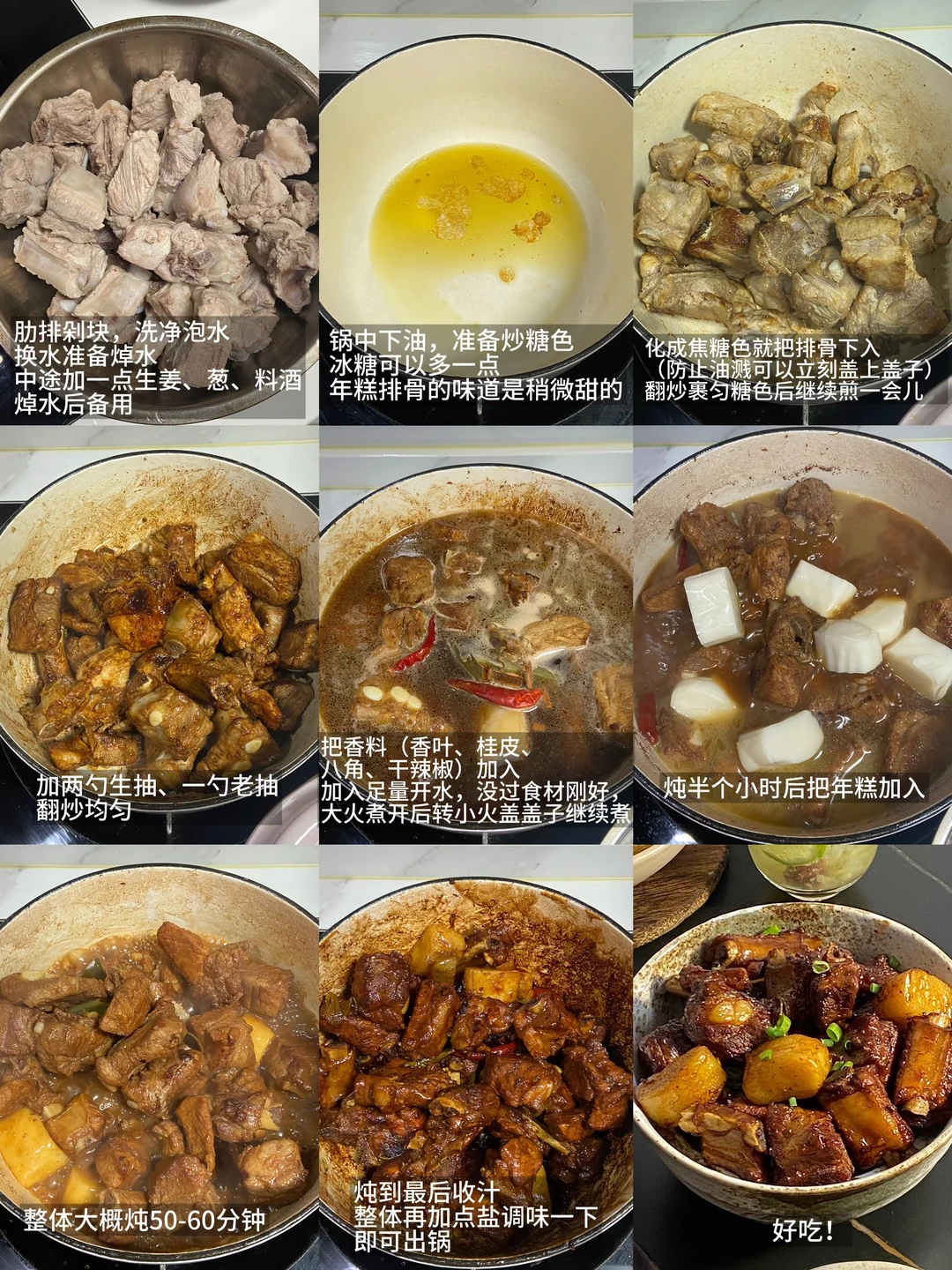 5)炖半个小时后加年糕,整体炖煮大概需50-60分钟,稍微加一点盐调味,收汁即可开吃
