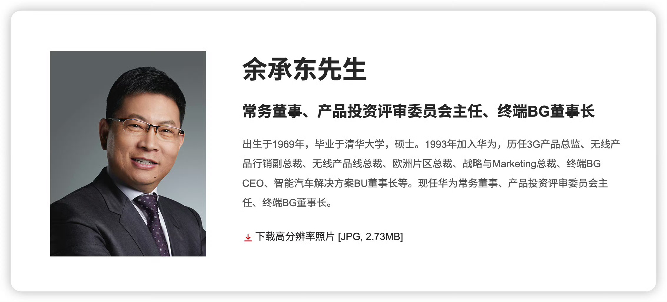 余承东任华为终端公司董事长只能说余承东的能力确实强一手把华为手机带着起飞在高端化这一块做的很成功目前汽车业务也很顺利现在接管了华为终端一点也不意外