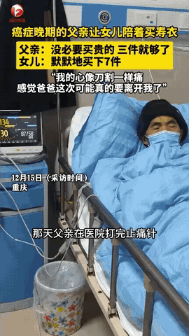 “泪目了!”重庆,一父亲肝癌晚期,在医院打完止痛针后,突然提出,让女儿陪他出去买寿衣,不料,到店里之后父亲 说:“没必要买贵的,买3件就够了!”但是,女儿却默默买了7件,女儿坦言:“心像刀割一样痛,感觉爸爸这次可能要离开我了!” ​他到最后都在替孩子省钱,却不知女儿看着他瘦得脱相的模样,心里早像被刀割。 ​那些劝你别乱花钱的叮嘱,那些把后事安排得明明白白的从容,从来不是父母不怕离别,而是他们想把最后一点麻烦都替你扛了。 ​我们总以为孝顺有大把时间,却忘了生命是场倒计时,父母的爱从来都藏在“怕你受累”的细节里。 ​所谓父女一场,不过是他拼尽全力护你长大,你拼尽全力想留住他多一刻。 有网友说,想起我的妈妈癌症晚期很痛苦,受了很多罪还是没留住,已经离开13年了 我们总以为孝顺有大把时间,却忘了生命是场倒计时!树欲养而风不止,子欲养而亲不待, 往而不可追者,年也;去而不可得见者,亲也。 笔者认为,生命是场倒计时,父母的爱从来都藏在“怕你受累”的细节里 对此,你怎么看呢?