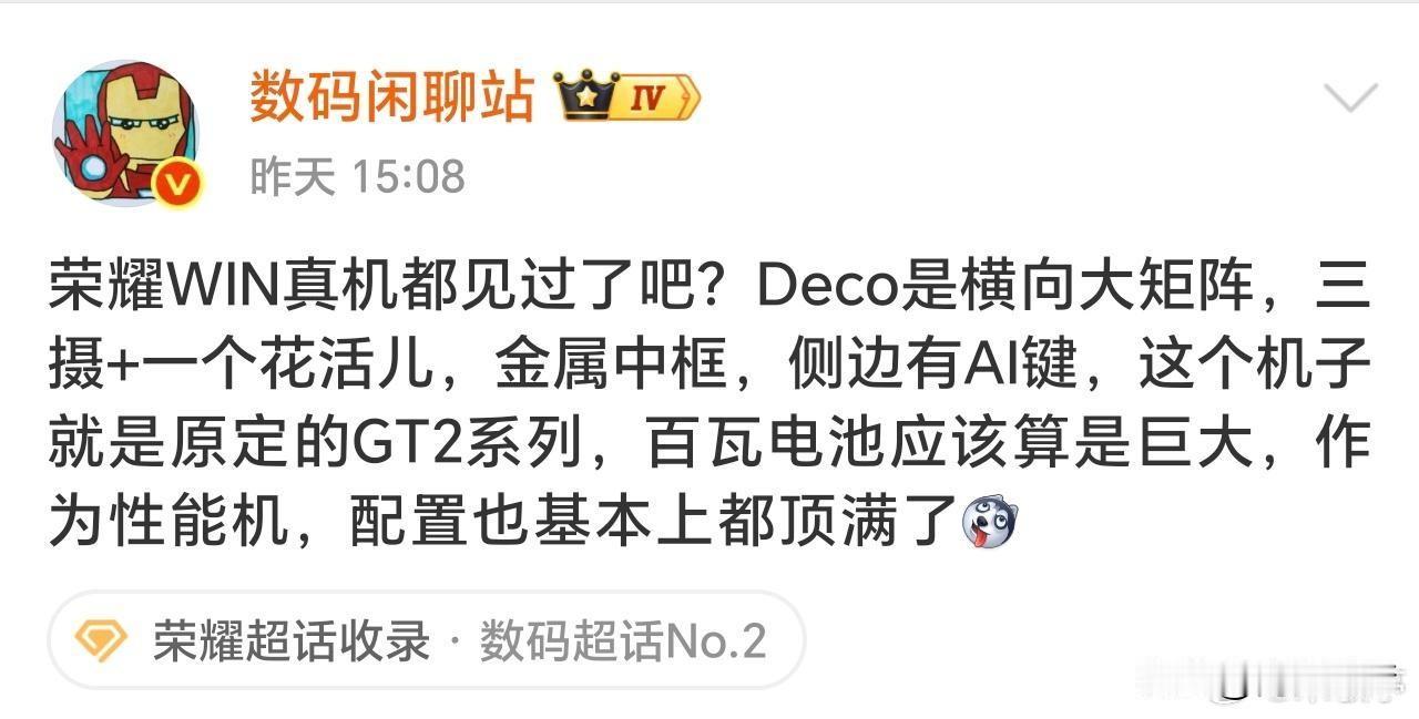 两天一充?荣耀牛啊!即将在12月31日发的荣耀Win和WinRT,光看配置就忍不住想冲了。 最离谱的就是电池,WinRT直接塞了10000mAh青海湖电池,Win也有9900mAh,这容量别说两天一充,我感觉轻度用三天都没问题!而且充电也没拉胯,100W有线快充,早上洗个脸的功夫就能补满电,Win还多了80W无线充,随手一放就能充,太方便了。 更意外的是,这么大电池,机身居然没做成砖头,厚度才8.8mm,重量215克左右,和普通手机手感差不多,完全没想象中笨重。外观是横向大矩阵相机模组,金属中框+玻璃背板,还有AI按键,颜值和实用性都在线。 性能也没含糊,Win用了骁龙8 Elite Gen5,WinRT是骁龙8至尊版,玩游戏、刷视频都贼流畅,还带了散热风扇,不怕玩久了发烫。拍照配置也给得足,主摄、超广角、长焦都配齐了,日常拍照完全够用。 价格也挺香的,WinRT的12+256G才2699,Win的12+256G是3599,这个配置配这价格,感觉年末换机可以直接锁定了!就等发布后看看真机手感,要是没啥问题,直接冲就完事了。
