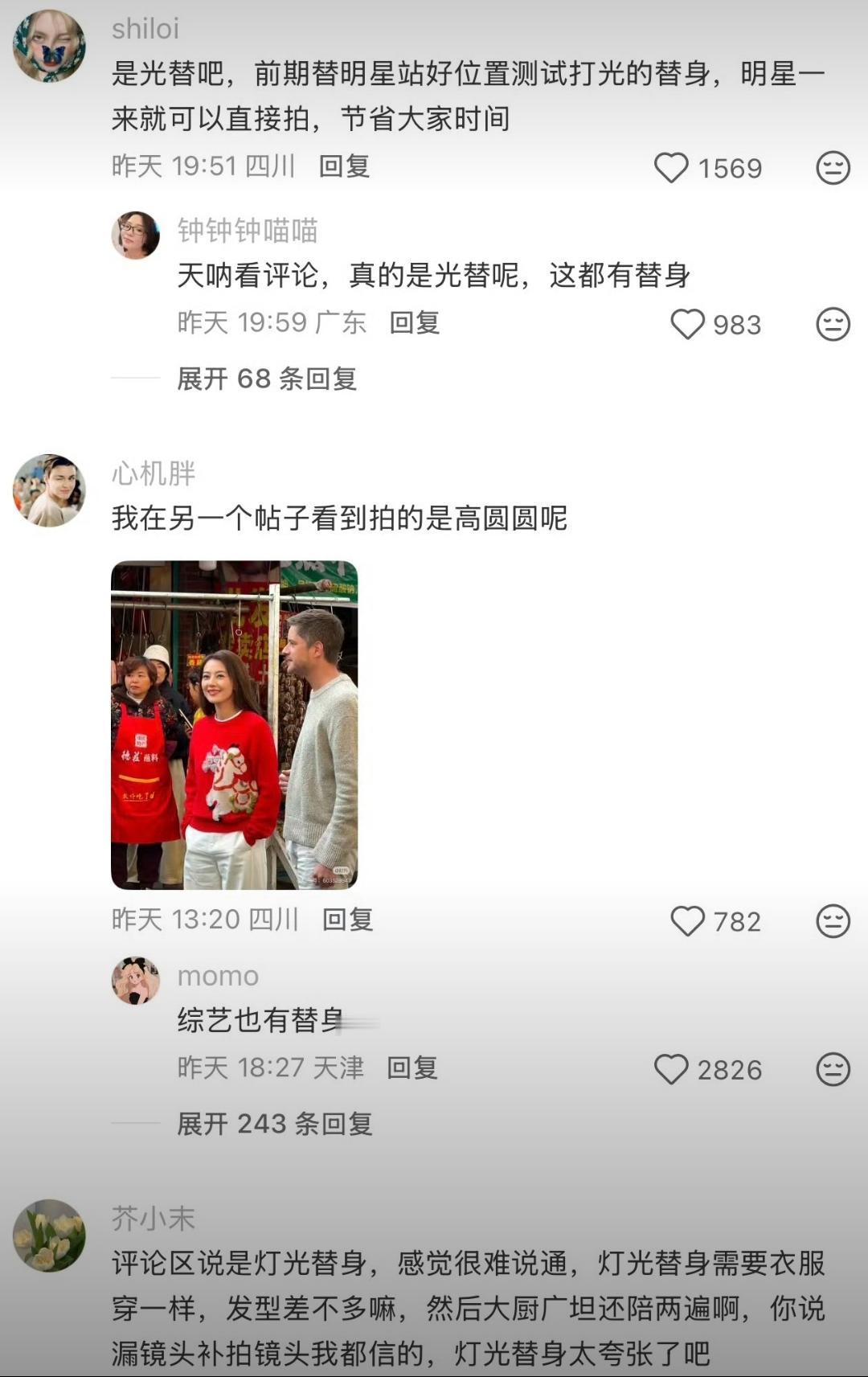 谁懂啊!玉林菜市场偶遇综艺拍摄,本以为能蹲到高圆圆本人,结果镜头前竟是张陌生脸,穿的却和高圆圆同款路透造型一模一样! 评论区直接破案:是光替!第一次知道录综艺还需要替身,不是说综艺都是吃吃喝喝逛吃躺平吗?逛个菜市场都要找人代拍? 网友吐槽笑不活:合着明星只负责露脸出镜,走位打光全靠替?这波操作属实刷新认知,难道现在综艺圈都卷到连逛菜场都要“分工明确”了?咱就是说,这综艺录制比拍戏还讲究?