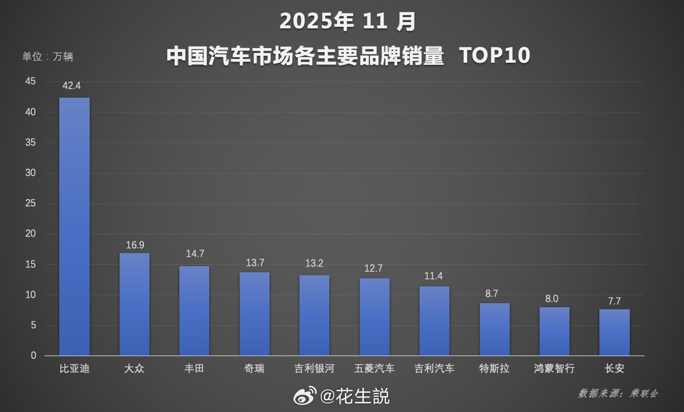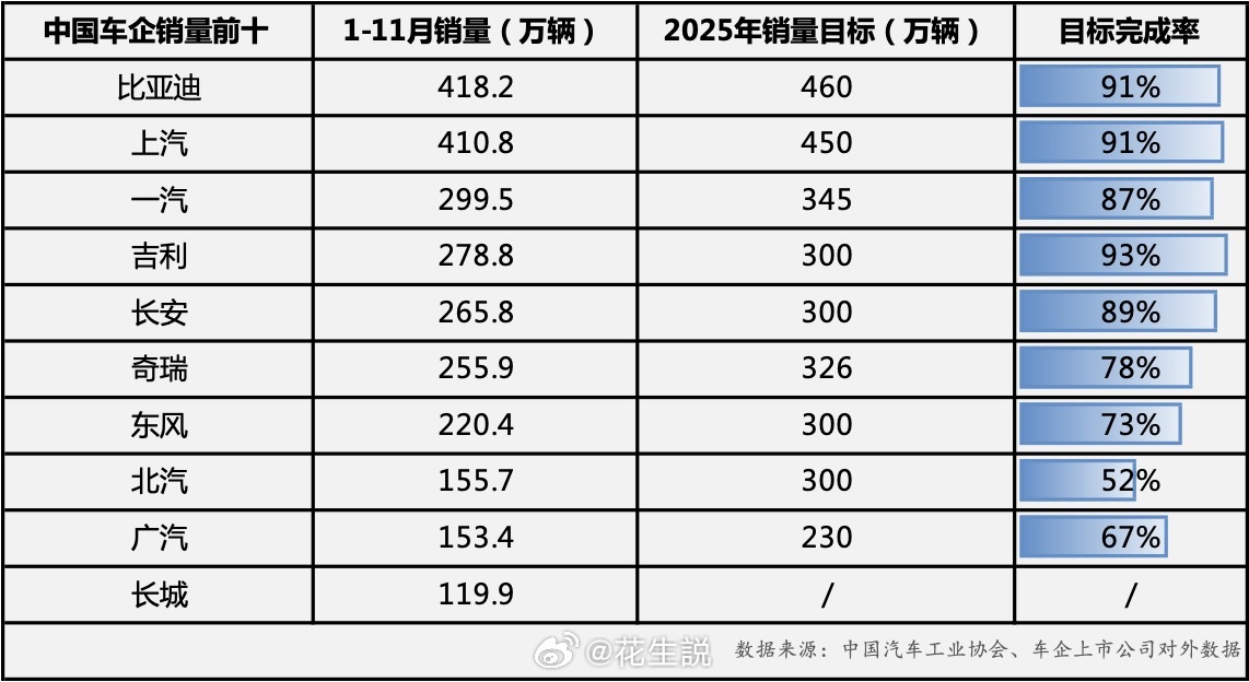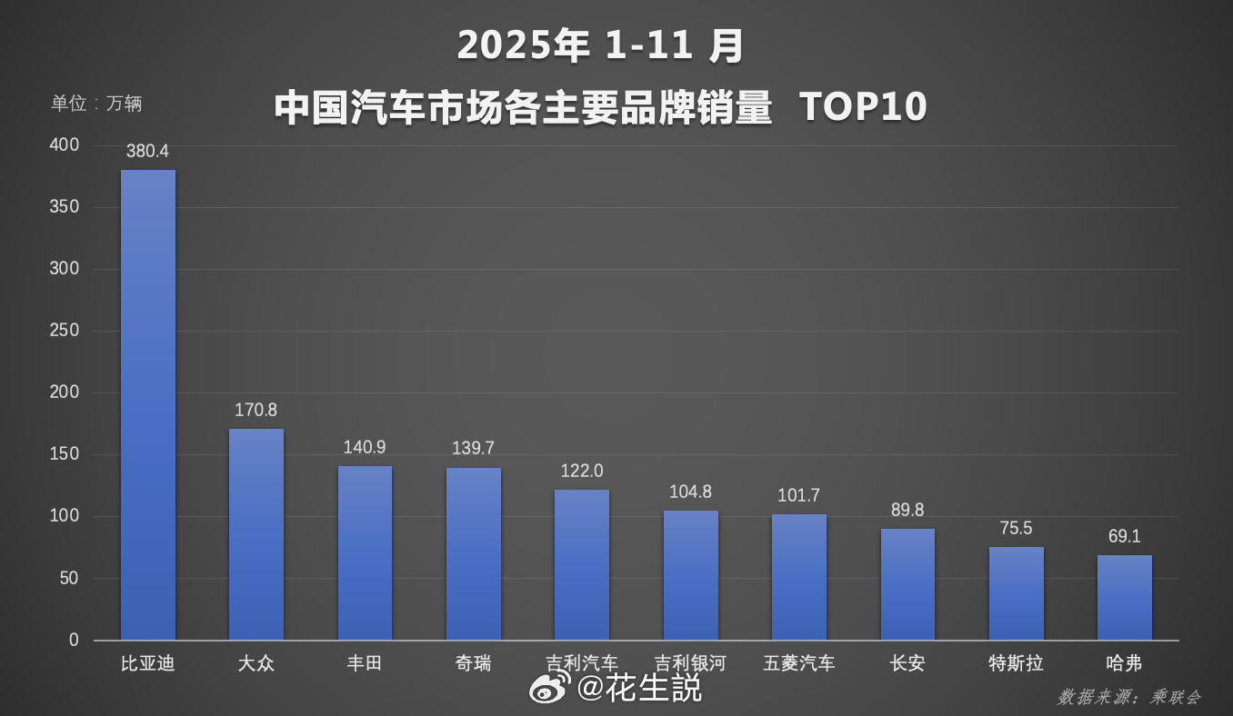在车市进入年底冲刺阶段的11月份,比亚迪作为国内龙头企业,在2025年前11个月销量同比增长了11.3%,以11月销量 48 万辆的成绩,在新能源汽车销量排名里甩开第二名两倍还多,有望超额完成全年目标。同时海外市场的开拓,也让海外销量成为比亚迪销量增长的重要组成,截止11月,比亚迪全球新能源汽车累计销量达1470万辆,规模和体系优势愈发显现!