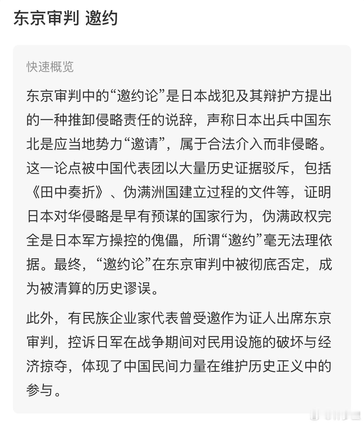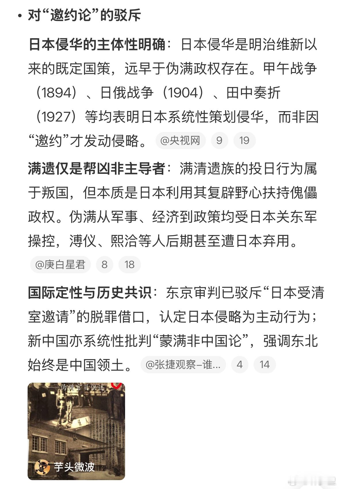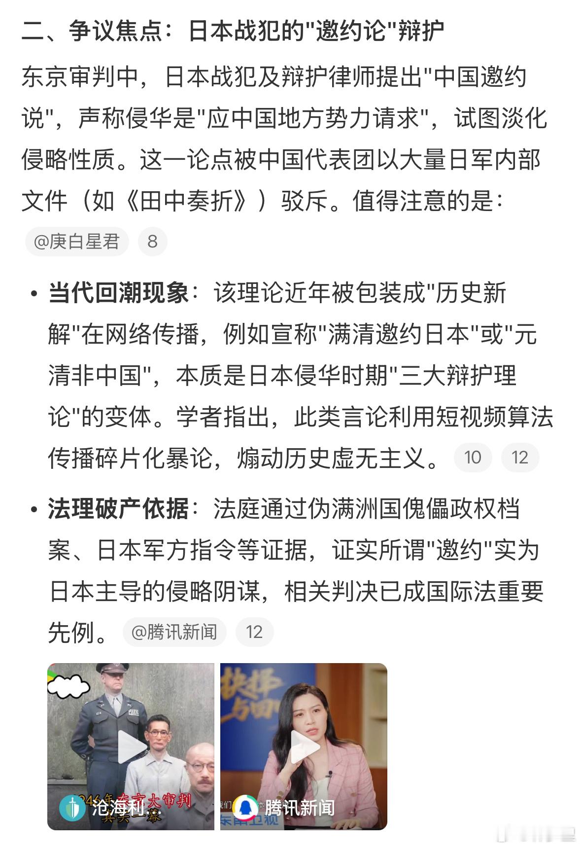 所谓满清的“邀请论”,并不新鲜。这是老黄历了,是日本战犯辩护律师的核心论点,图1。当时东京审判中,就已经驳回了这个话术,图1。我也清楚的记得这个知识点。所以,那啥蒙主,粉丝说她知识广,逻辑能力强,那为什么不知道东京审判上的内容?敢情光说邀请,不说被法庭驳回?说了很多视频,大多数观点粉丝说很好,结果一个视频里掺和了战犯的辩护话术。这让人怎么想?能怪反驳她的人吗?我理解很多人不满清朝,骂,大骂特骂都没关系,但不应该搬出日本话术。。。。