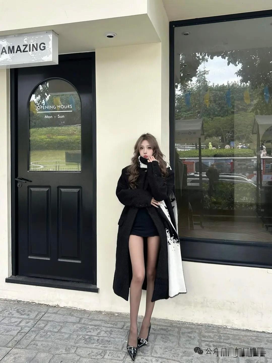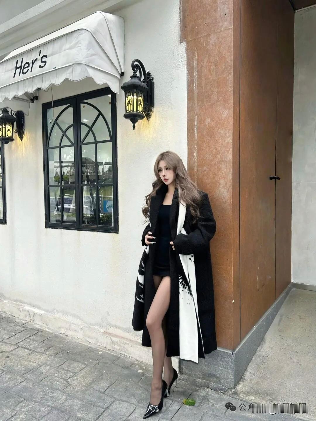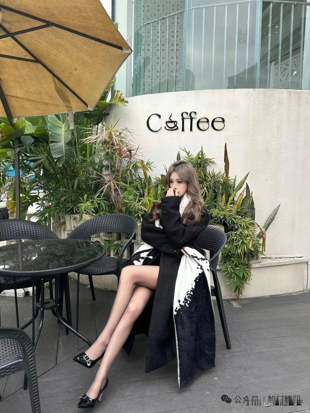 都市咖啡馆的时尚少女,黑白色调穿搭,优雅动人。