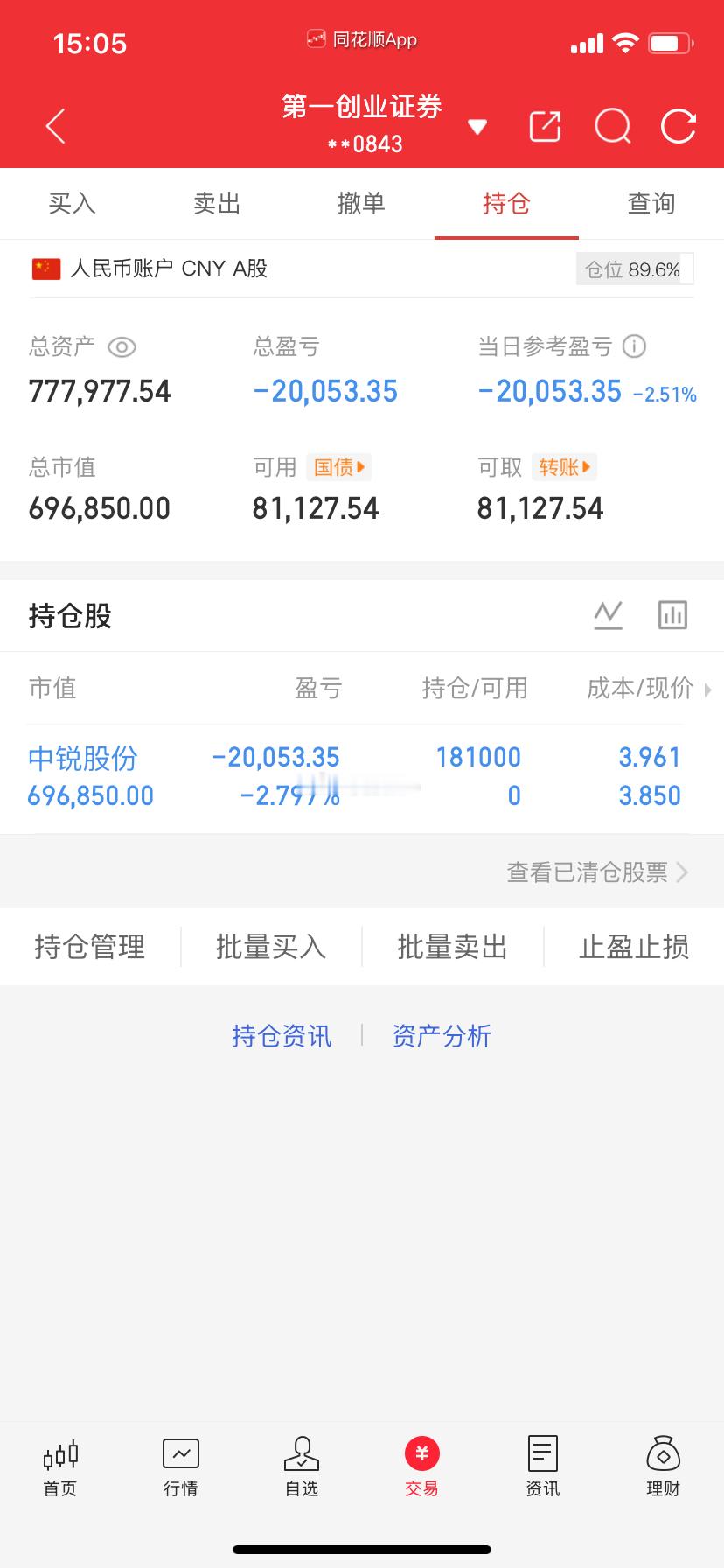 爱股程全职炒股日记40w本金挑战一年翻5倍,第( 74 )天!总资产:77w当日参考盈亏:-2.0w目前持有:中锐股*今日动向:早盘进中锐股*特别声明:本文仅是个人观点及操作不构成投资建议,仅供参考!