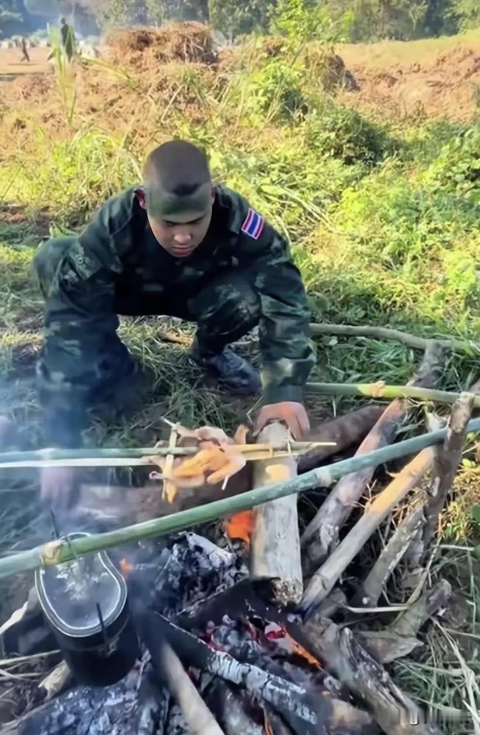 离谱!泰柬战场变野炊现场?泰国士兵在柬埔寨境内烤鸡谈笑,网友:这打仗跟过家家似的! 最近泰柬边境打得火热,一会儿是F-16战机空袭,一会儿是火箭炮互轰,还关停了所有边境通道,可前线却曝出离谱画面:泰国士兵在柬埔寨境内架起火堆烤鸡,几个人围坐一团有说有笑,放松得像户外露营,不知情的真以为是朋友聚会。 大家最好奇这鸡从哪来?其实答案不复杂:虽然边境口岸全关,但局部战线有短暂停火间隙,士兵可能从附近未撤离的村落采购,或是军方后勤补给里的便携食材——毕竟泰军掌握战场主动权,补给线没被切断。而且这场冲突本就是“低烈度循环”,打打停停成常态,双方没到你死我活的地步,才让士兵有了这样的松弛时刻。 不过别被表面迷惑,冲突背后可不轻松:已有几十万民众被迫撤离,跨境贸易暴跌到原来的千分之一,中国承建的跨境大桥还被炸毁,民生和经济都遭了重创。士兵的轻松,更像是高强度对峙中的短暂喘息。 一边是炮火连天的边境,一边是烤鸡谈笑的士兵,这场冲突藏着太多反差。你觉得这只鸡到底是采购的还是后勤补给?