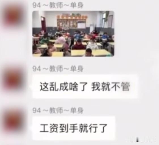 毫无师德!陕西铜川高新实验学校一名教师公然在百人群里发言:让他们(学生)全都甲流! 班里纪律乱,该教师也不管:这都成啥了,我就不管!工资到手就行了。 群里有人质疑:你这心态,这工作你也干不了多久。 结果该教师骄傲的回应:不好意思,我(有)编制。 该教师群里的名字是“94、教师、单身”,好家伙,一名30多岁的大龄剩女! 不仅没有师德,敷衍工作,说话言语脏字频出,素质极差! 目前,该教师已被停职! 教师不良现象