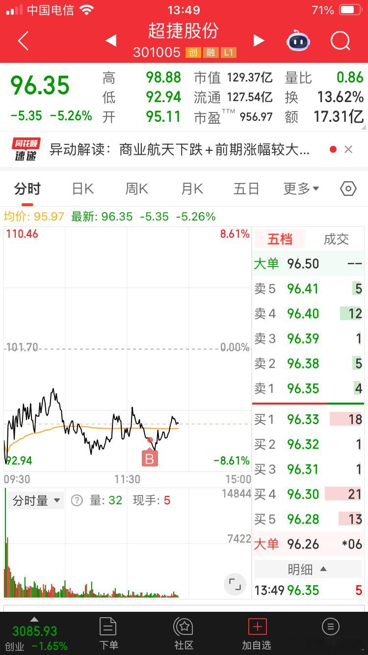 短线出击$超捷股份 sz301005$ 芳华剧本