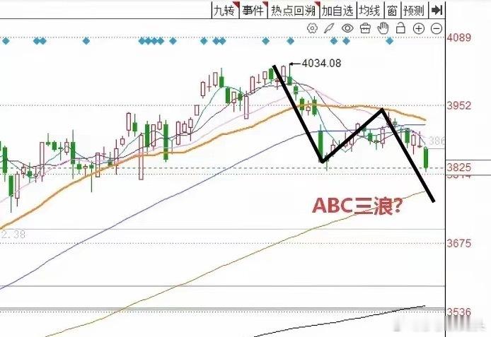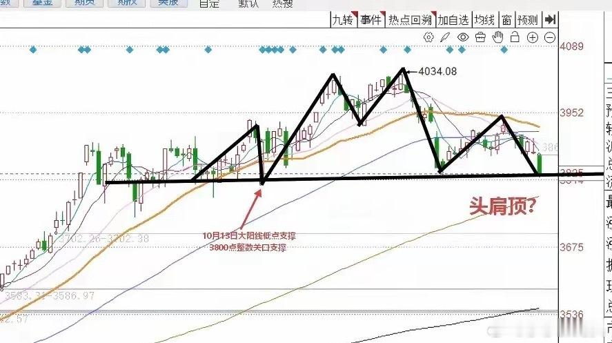收评: A股全线走低,C浪来了吗?明天会反弹吗?莎莎对于今天的预测得60分收盘了,三大指数全线大跌。截至收盘,上证指数跌1.11%,深证成指跌1.51%,创业板指跌2.1%。截止收盘。三是上涨的家数1091家,下跌的家数4302家,截止收盘。三市的成交额1.75万亿,比上一个交易日明显萎缩463亿。从今天市场整体的走势来看,还是基本符合莎莎的预判,因为在上一周的时候,我就明确的和大家讲到了,上证指数头肩顶的可能性。尤其是在上周星期天“周末总评视频”和文章当中,重点和大家讨论了市场走头肩顶的可能。什么是头肩顶?大家请看图一,上证指数日线图。从图一当中,大家可以清晰的发现市场,有一个非常标准的头肩顶走势。并且今天已经下跌到了头肩顶的颈线位置,3816点附近。而3816点从上一周开始我就明确的告诉大家,市场调整的第1支撑点在3816点。目前看来,市场确实验证了我的观点。当然这个位置从浪形结构上来看 不仅是存在头肩顶的可能性,也确实存在abc三浪结构的可能性。什么是abc三浪?大家请看图二,上证指数日线图。从下图当中,大家可以发现非常清晰的一个可能的abc结构。所以大家担心,市场是不是要进入到c浪?这也是很合理的!不过在这里莎莎却要明确观点,我认为接下来市场指数在3816点止跌反弹的概率非常大!关注莎莎的朋友都知道,明天我是看出止跌十字星的,并且如果明天出十字星之后,市场后天就会出反弹型的阳线。暂时莎莎目前依然维持这个观点不变!那为什么我说接下来反弹的概率大呢?其实3816点附近,将是主力的一个重要的防守点,这个位置有多重重要的支撑。大家请看图三,上证指数日线图。从图三当中我们可以发现,上证指数当前所处的点位,不仅仅只是头肩顶颈线位置的支撑,而且还是10月13号大阳线低点,3800点整数关口附近。而且再不济的情况下,市场指数离底下120日半年线的支撑也比较接近了。所以就是说,到达今天这个点位的时候,市场向下的空间已经比较有限,而反弹的条件已经基本成熟。所以这也就是为什么我看多接下来1~2个交易日市场表现的原因。最后大家看一下图四我昨天晚上更新的,关于今天走势的手绘预测图。虽然昨天莎莎画的是低开十字星,与今天市场的走势确实相差很远。但是整体来看,方向至少是对的,而且我也早在上周就明确的指出了,接下来调整的第一目标位3816点。今天市场的最低点,确实就是3816点附近。今天的收盘点评,先和大家说这么多,关于明天走势的手绘预测图,将会在稍晚一点更新。兄弟姐妹们点赞,评论加关注就是对莎莎这个纯技术派的最大支持。